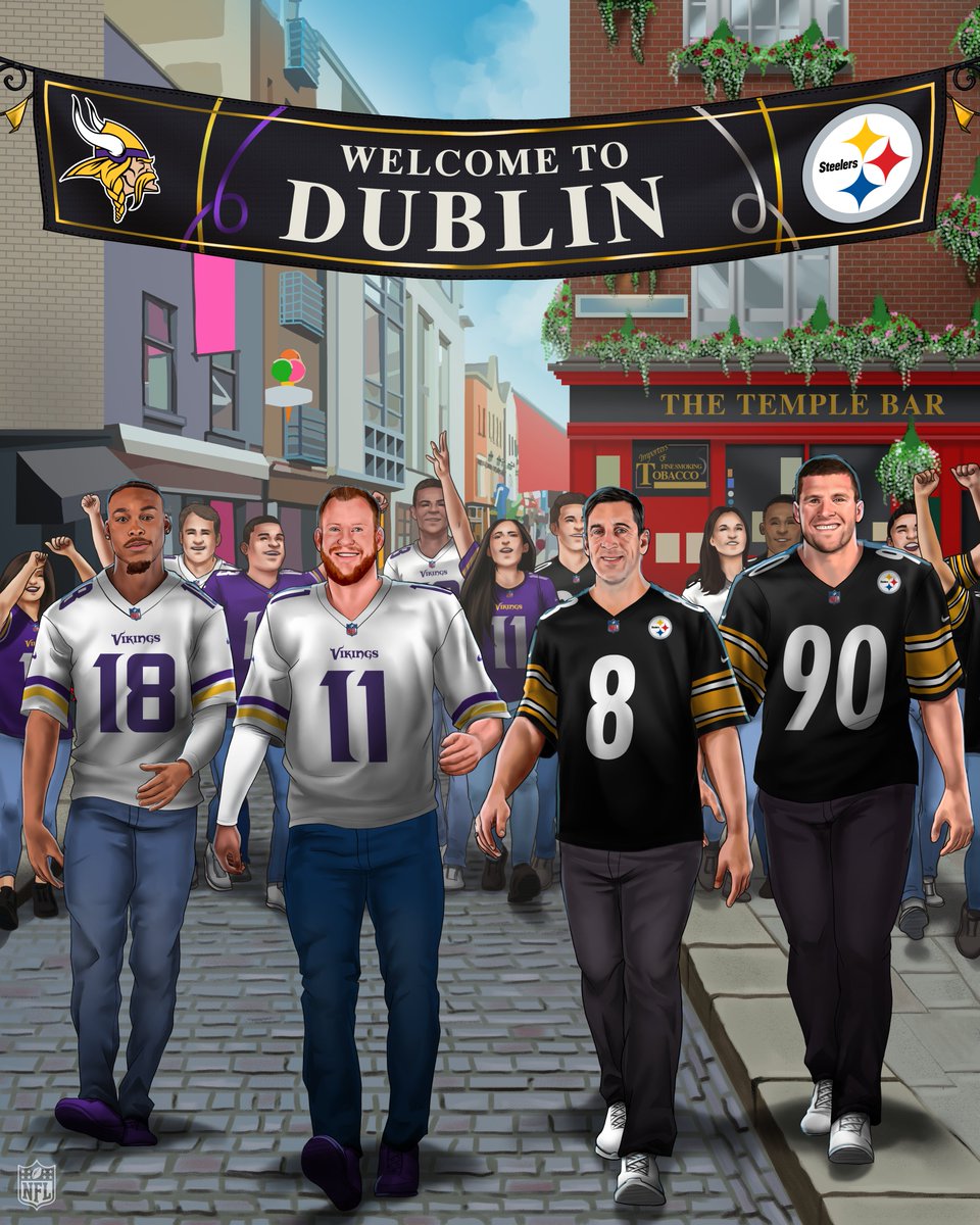 NFL官方X账号发推特报道,欢迎大家来到都柏林,@Vikings与@steelers!明尼苏达维京人对阵匹兹堡钢人——北京时间21:30在@nflnetwork直播同时可通过@NFLPlus流媒体观看