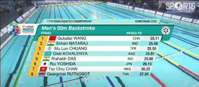 印度选手纳塔拉杰25.48获得银牌,中国台北选手庄沐伦25.50获得铜牌。