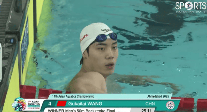 游泳亚锦赛:王谷开来25秒11获得男子50米仰泳金牌