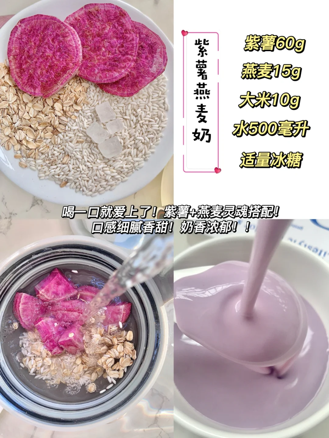 食材:紫薯60g、燕麦15g、大米10g、水500毫升