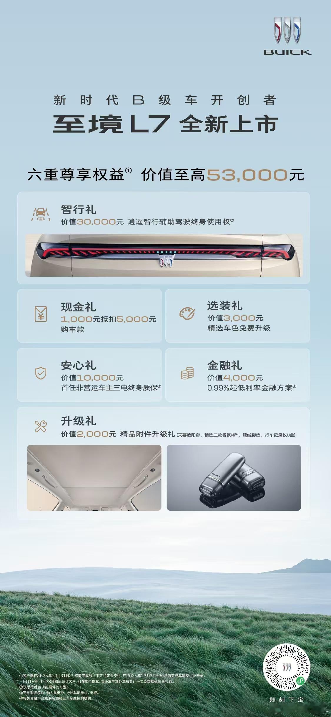 今天(9月28日)新时代B级车开创者——至境L7正式上市,共推出5款车型,限时权益价16.99万元~21.59万元。16万99起至境l7开创b级车新时代别克至境l7