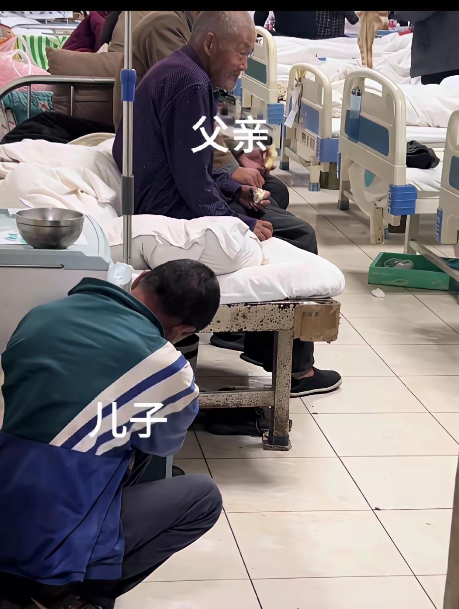 医院里一对父子的早餐 就是简简单单的两个馒头 连咸菜都没有 勤俭节约是我们中华民