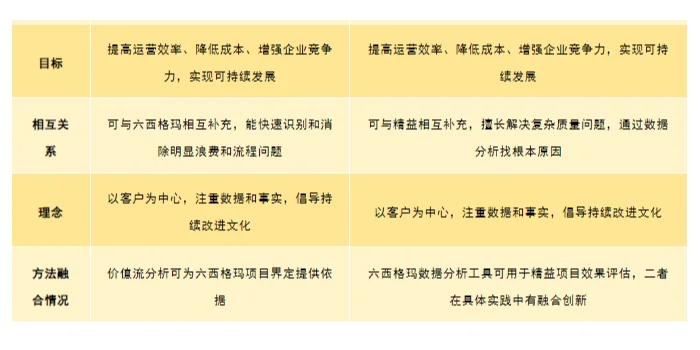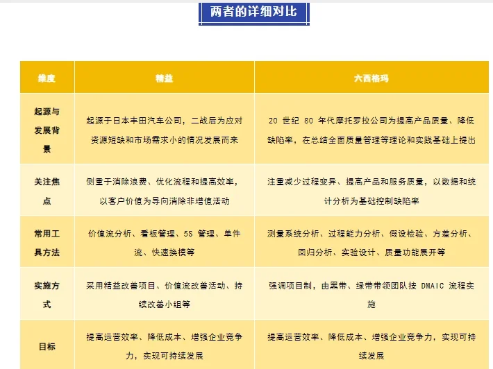 精益关注流程优化和浪费消除,六西格玛关注数据驱动的改进和质量控制。