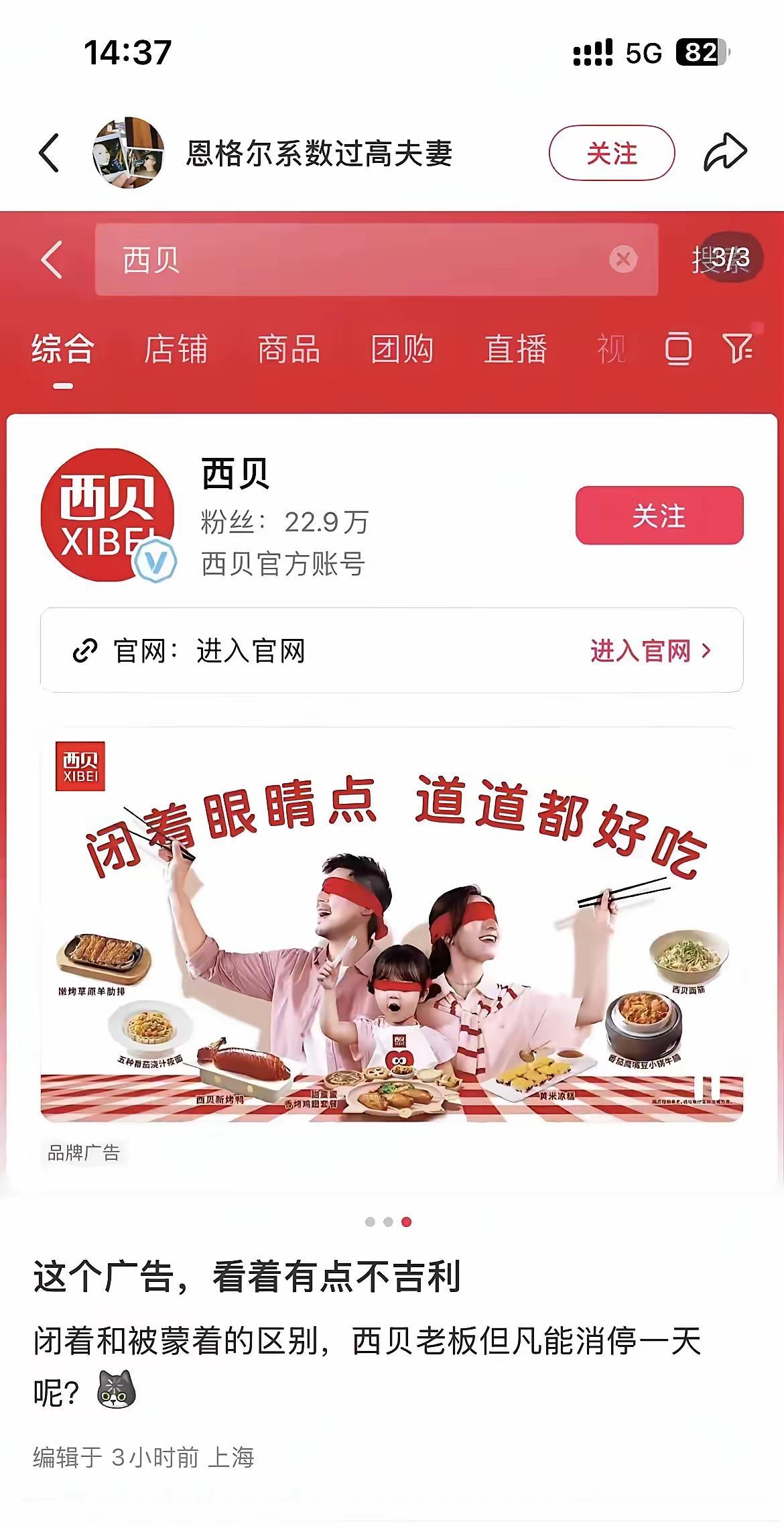 某贝最近的公关是这样的的: 七岁的毛毛以为再也吃不到某贝了; 某贝员工的微笑,治好了任正非的抑郁; 某贝员工给大爷一碗汤,大爷要把房子送给某贝员工; 1岁孩子在某贝学会了吃饭; 在某贝可以闭着眼睛点菜; 这个华与华公司,是华文和华武开的吧?堪称史诗级灾难公关了。