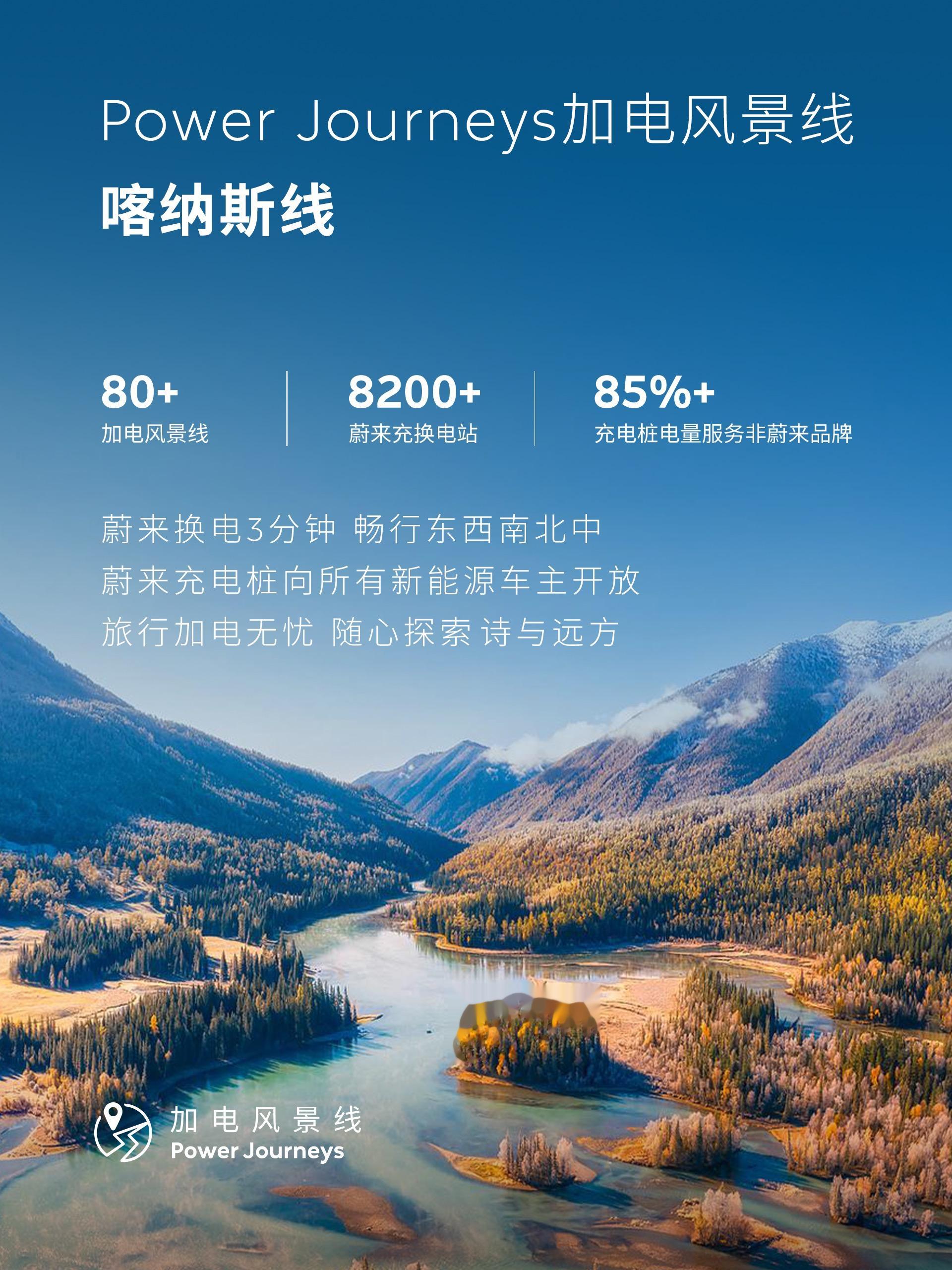 如果你计划十一去西北或边疆,蔚来的“加电风景线”可能会让你眼前一亮。这个2020年启动的项目,专门在基础设施薄弱但风景绝美的路线布局充换电设施,目前已贯通80条线路,核心目标就是“油车能去的地方,电车也能去”。