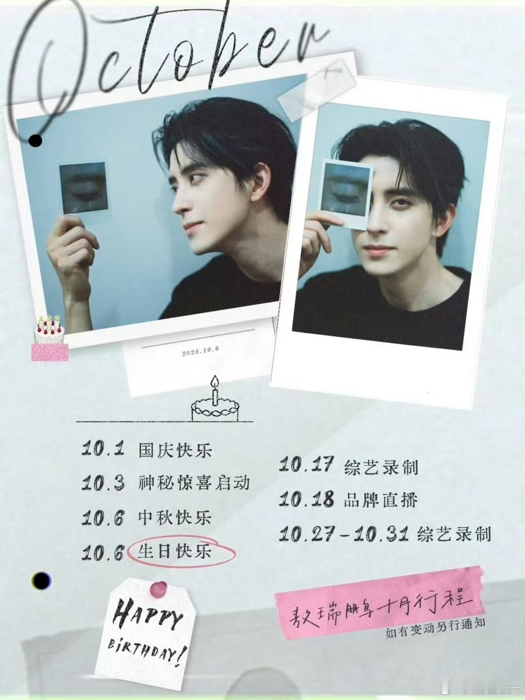 白鹿莫离10月杀青白鹿手写十月行程图 白鹿莫离10月杀青