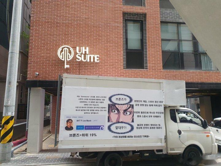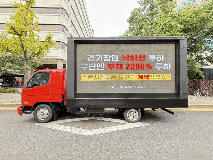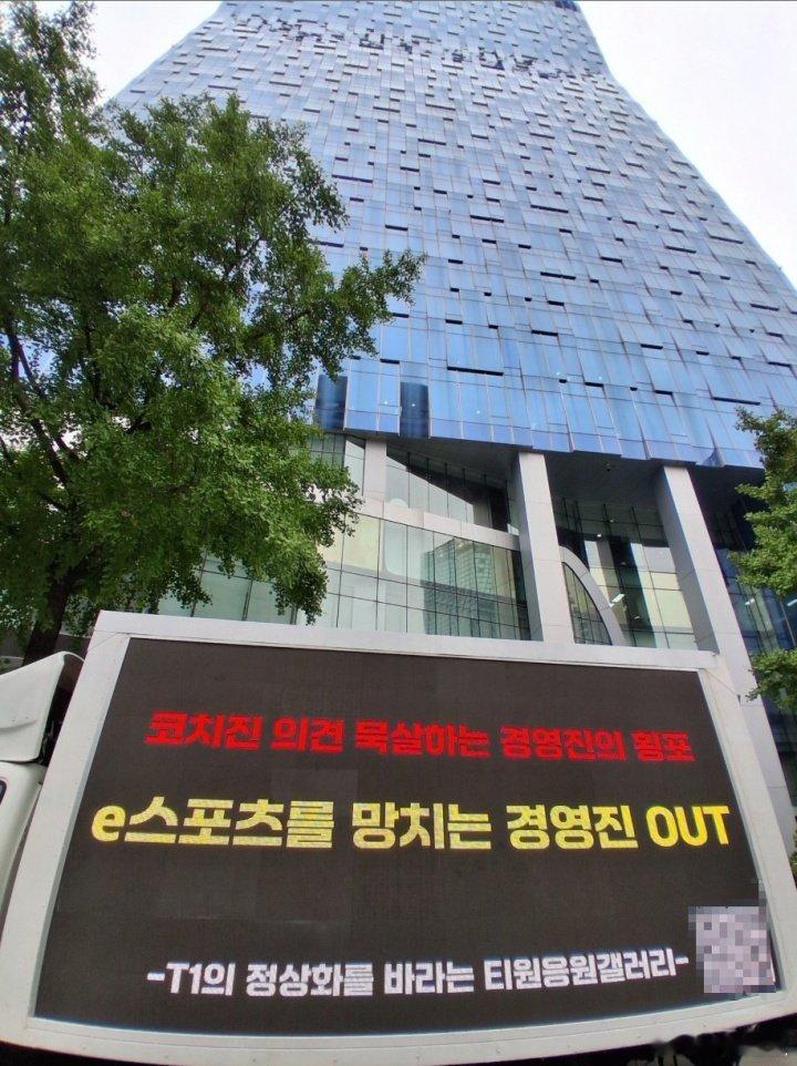 虽然T1以LCK4号种子的身份晋级S赛,但T1部分粉丝对于这样的形势依旧不满意,并且在昨日与今日继续在T1大楼以及附近进行卡车示威游行。