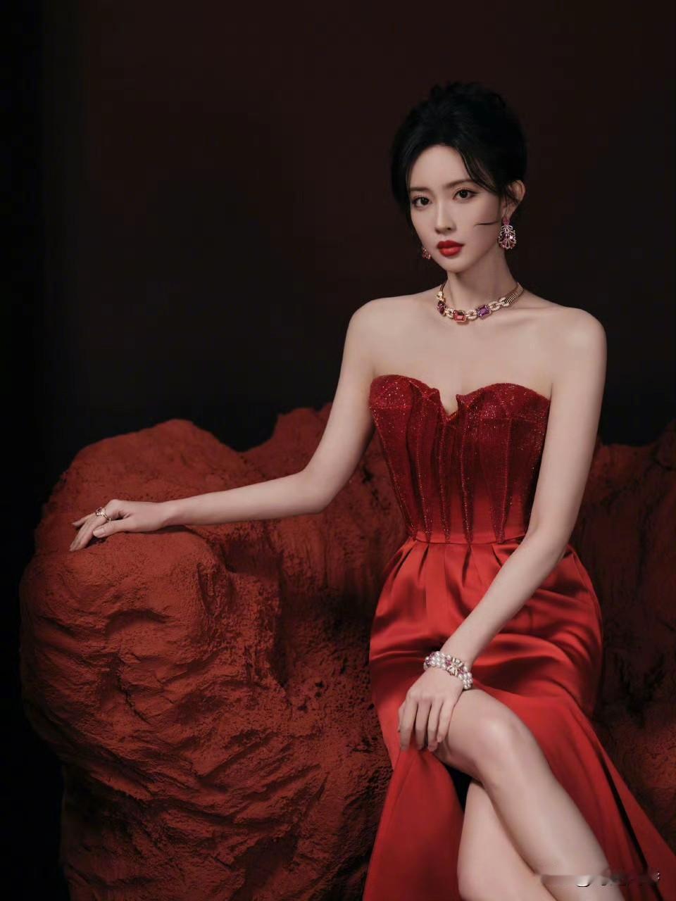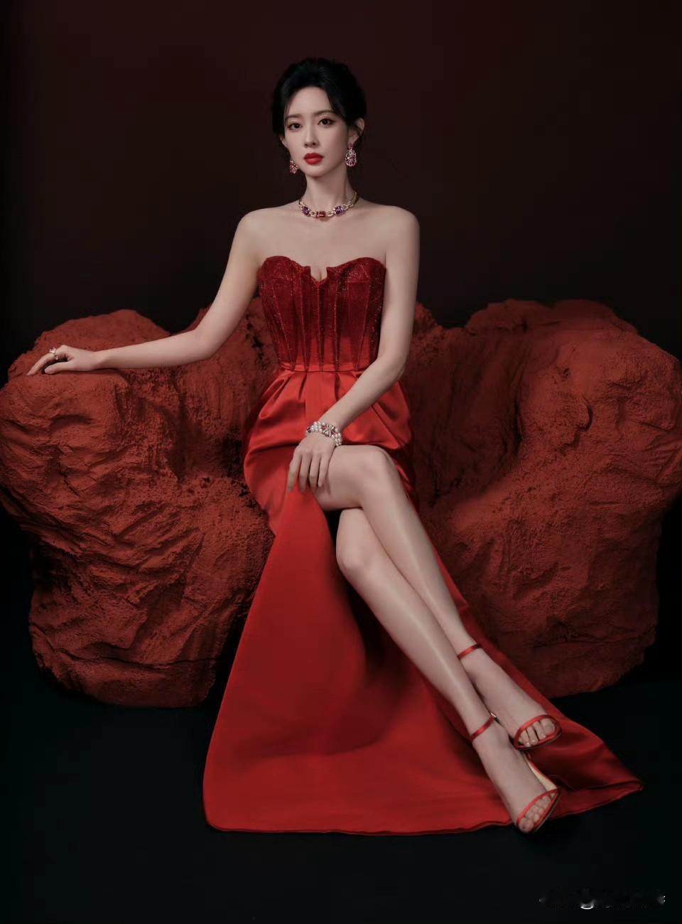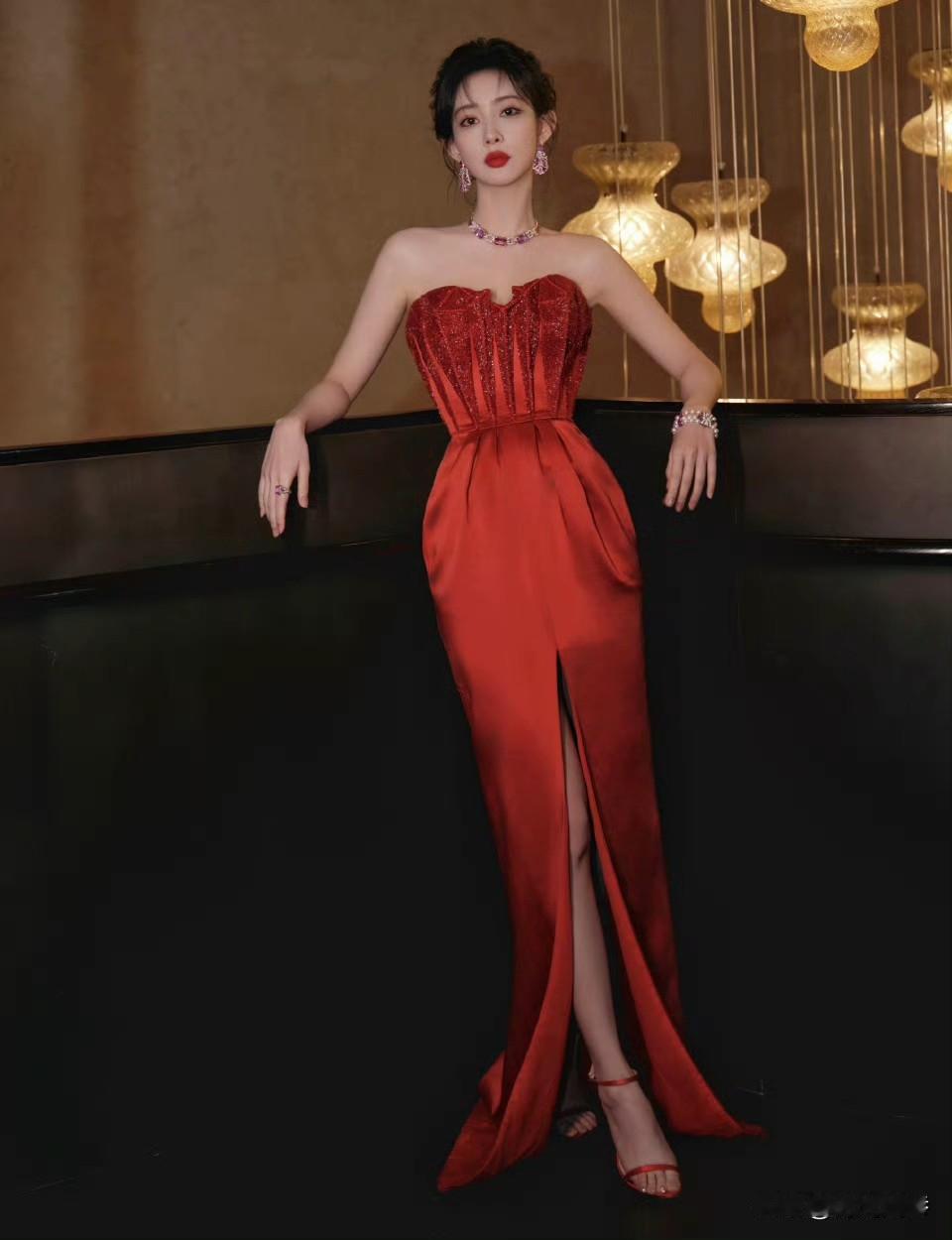 孟子义时尚穿搭,大红长裙搭配一字带高跟凉鞋,耀眼夺目,时尚大气。