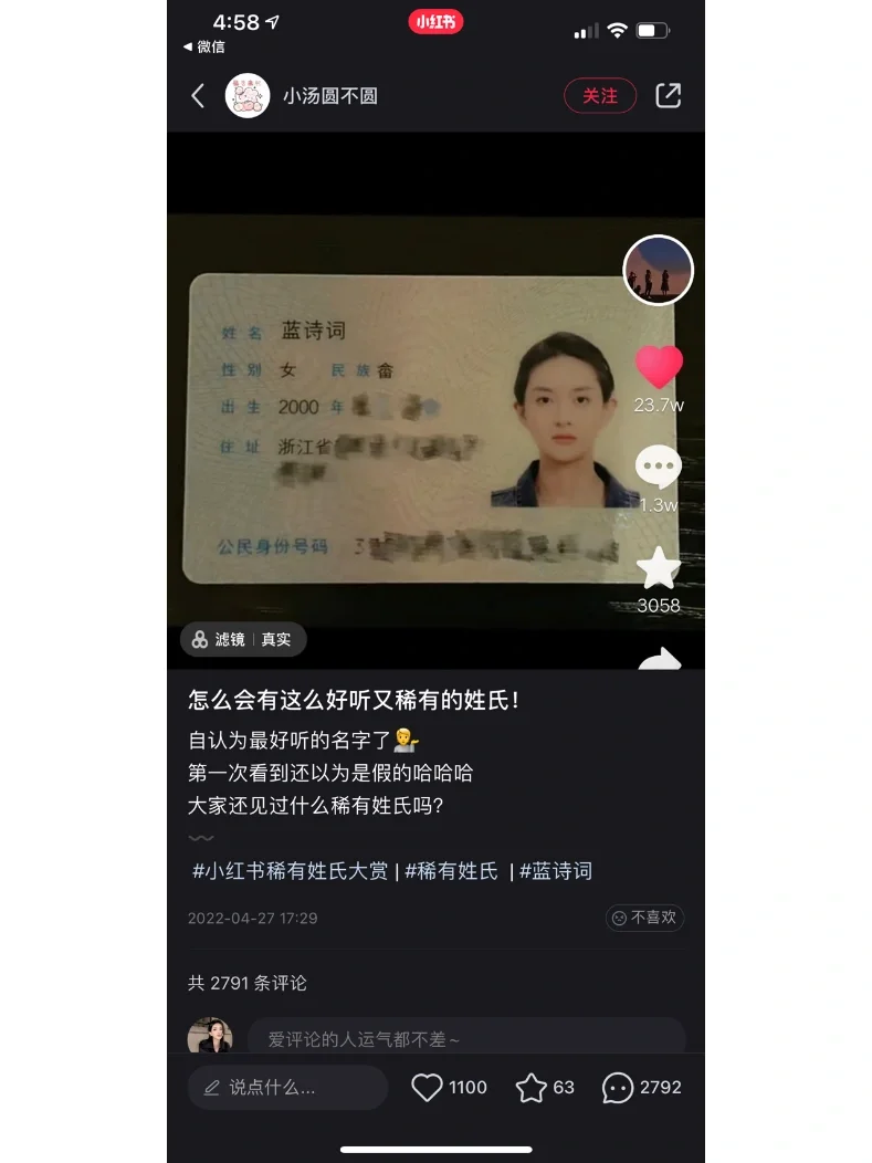经常被别人问名字是不是真的,是不是艺名,回答是真名后,基本每个人都会夸我的名字,真的非常开心~ 名字是从小到大的名字,不要总是纠结真假啦[喝奶茶R] 最后替爸爸谢谢你们,如此喜欢他取得名字,替妈妈谢谢你们,喜欢她的女儿[喝奶茶R]