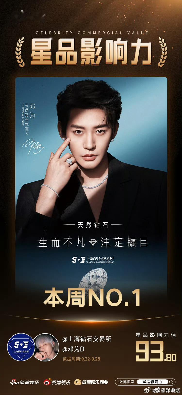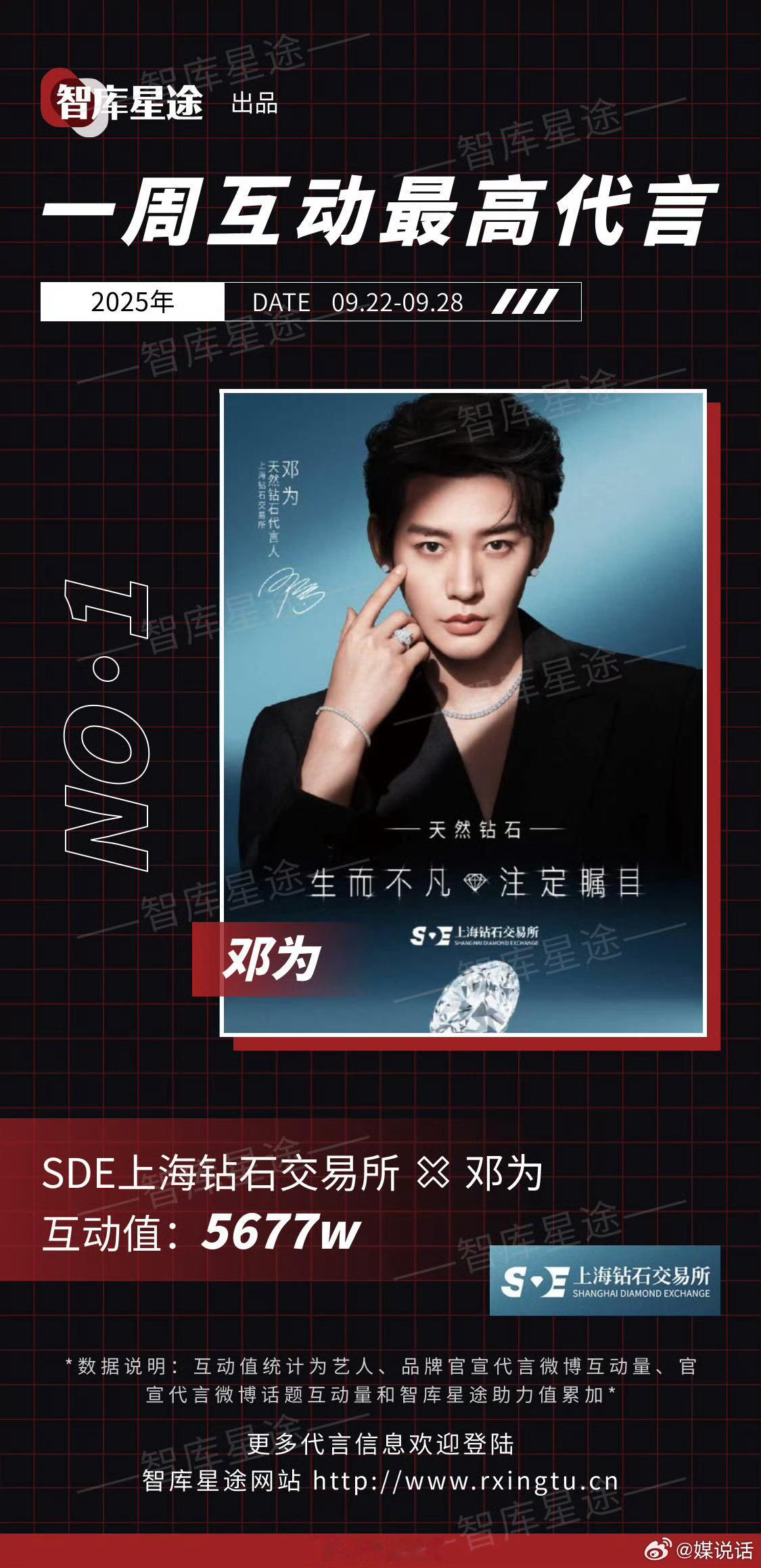 邓为上海钻石交易所代言人拿下9.22-28:星品影响力周榜第一🥇智库星途互动