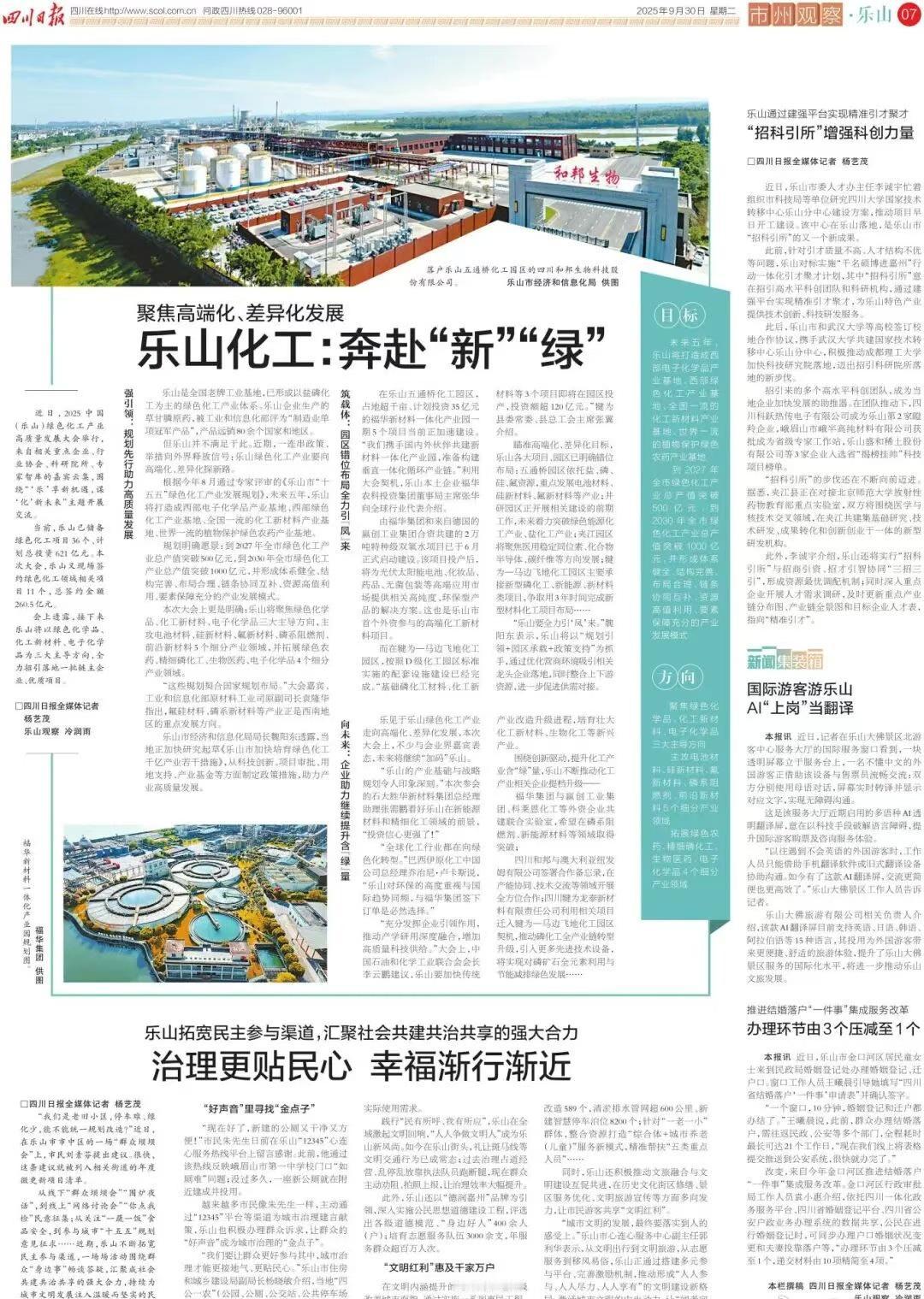 【今天,《四川日报》整版关注乐山】9月30日,四川日报整版关注乐山:乐山化工:奔