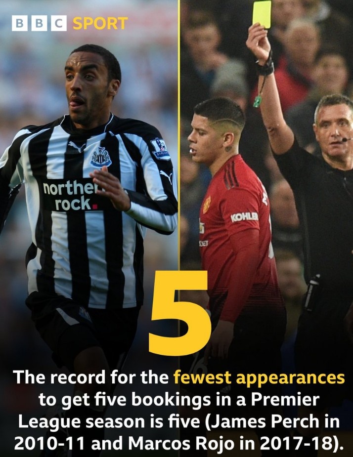 不过这并不是英超历史吃到5张黄牌最快纪录,2010/11赛季纽卡的詹姆斯-皮尔奇以及17/18赛季曼联的罗霍都曾经在5次出场就领到5张黄牌。