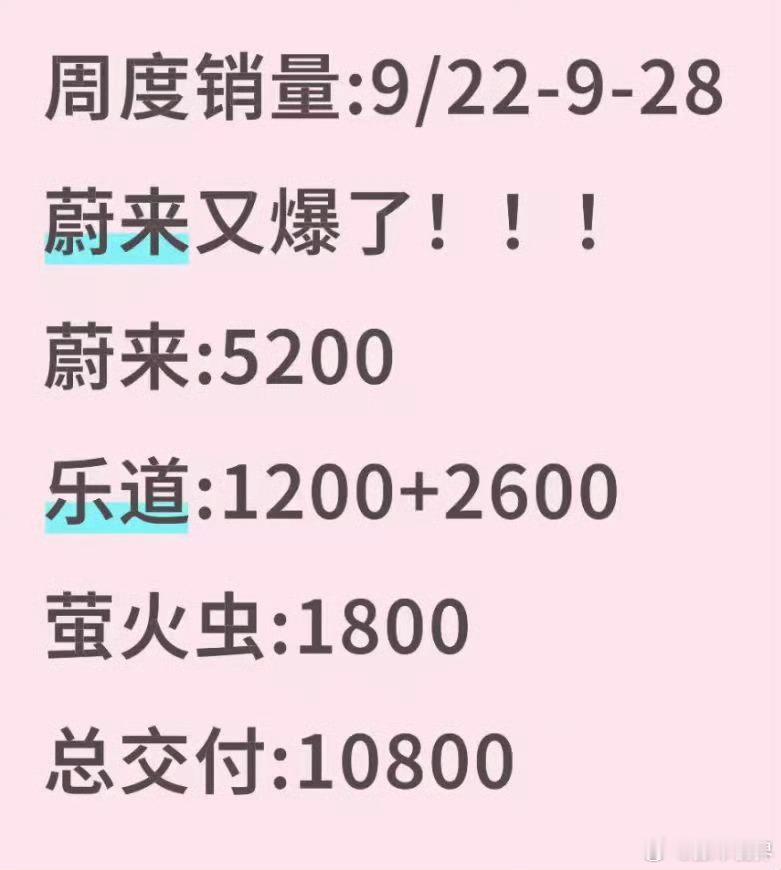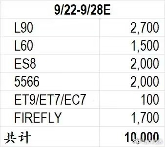主要是「大蔚来」,ES8有2000台开外,L90是2600台以上,萤火虫都有1800台。