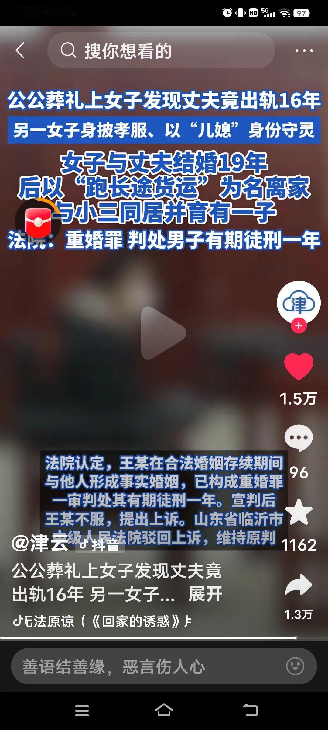 公公葬礼上,竟出现另一个“儿媳”身披孝服守孝。女子这才惊觉,丈夫已然出轨16年。 9月29日,在山东临沂,女子尚某与王某结婚19年。2022年6月公公葬礼上,一名叫温某的女子身着孝服,以“儿媳”身份守灵,这让尚某心生疑虑。 经调查,王某早在2006年便与温某同居,还育有一子。自2016年起,他以“长途运货”为借口离家,实则与温某以夫妻名义共同生活。 邻居证实,二人生活宛如夫妻,物流园监控也显示,王某以“丈夫”身份现身。庭审中,王某狡辩称与温某只是搭伙过日子,“没结婚,不算重婚”。 法院认为,王某在合法婚姻存续期间与他人形成事实婚姻,已构成重婚罪。一审判决其有期徒刑一年,王某不服上诉,最终被山东省临沂市中级人民法院驳回,维持原判。 看了这个案例,你作何感想?这王某真是搬起石头砸自己的脚,都有孩子了,还说搭伙过日子。这下可好,出去后看他跟谁过!法律是公正的,谁都别触碰法律的底线!