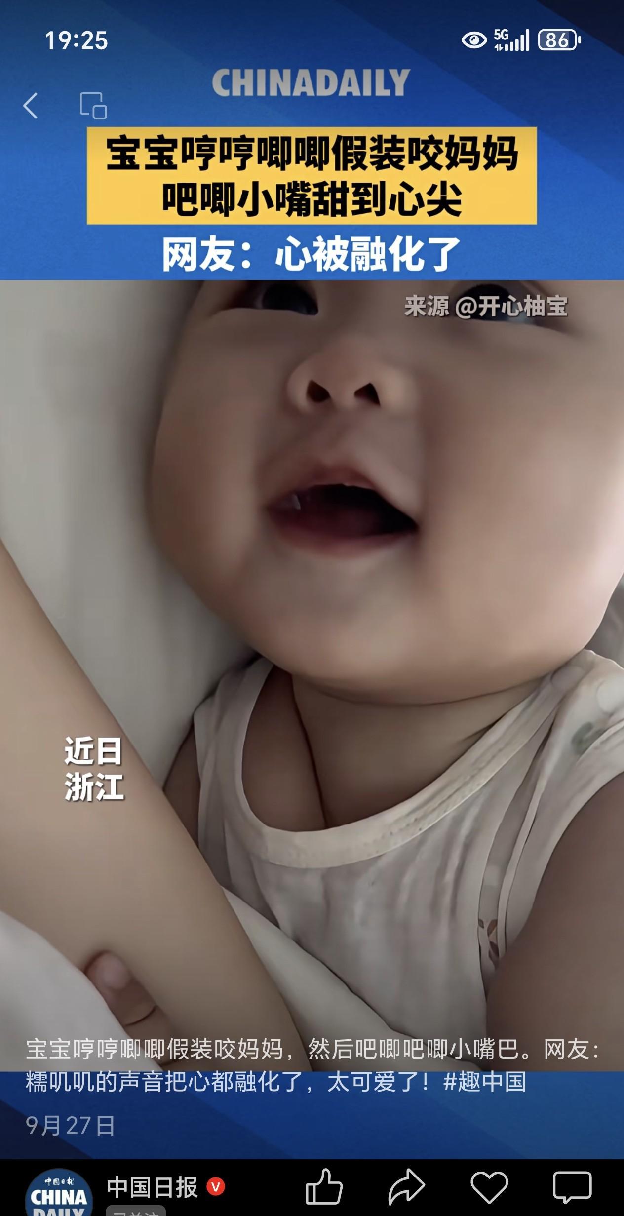 中国日报,每天发一个婴儿视频,把全天下的可爱小孩都收集来了。一开始还不知道,后来