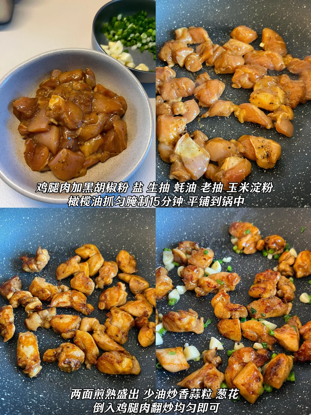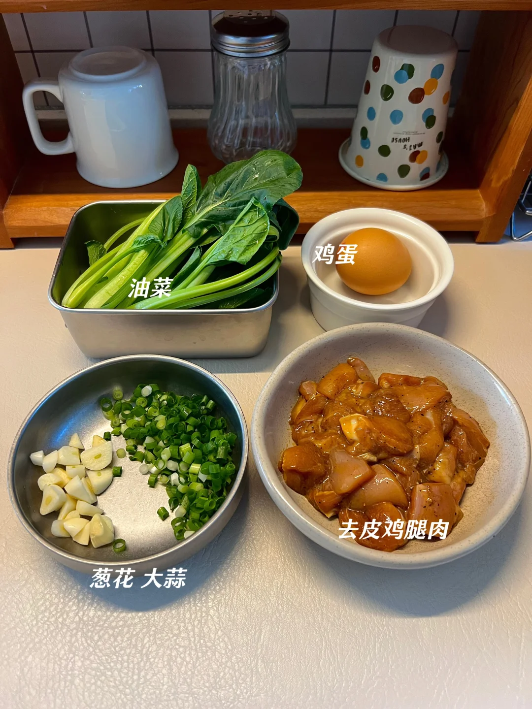 详细教程在后面图文部分哦 葱爆去皮鸡腿肉又嫩又滑 宝子们在腌制之前多冲洗几次 切成小块儿会更去味儿哦 溏心蛋原汁原味外脆内软 把蛋黄淋到鸡腿肉上那口感真的吃美啦 油菜 剩了半碗 今天的午餐也是又好吃又低卡哦!
