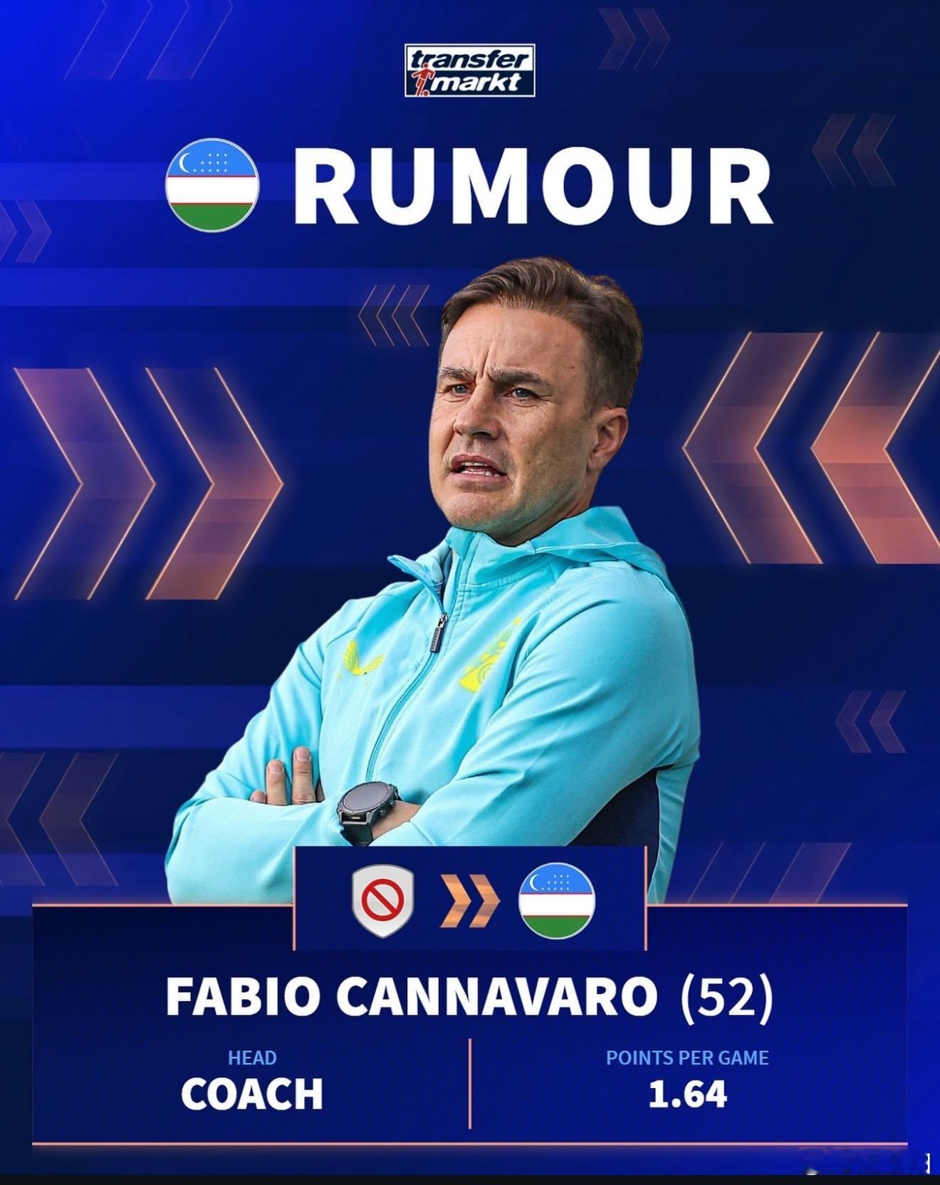 来自著名的罗马诺的消息说:已经取得明年世界杯决赛阶段入场券的乌兹别克斯坦国家队,正在接触卡纳瓦罗。