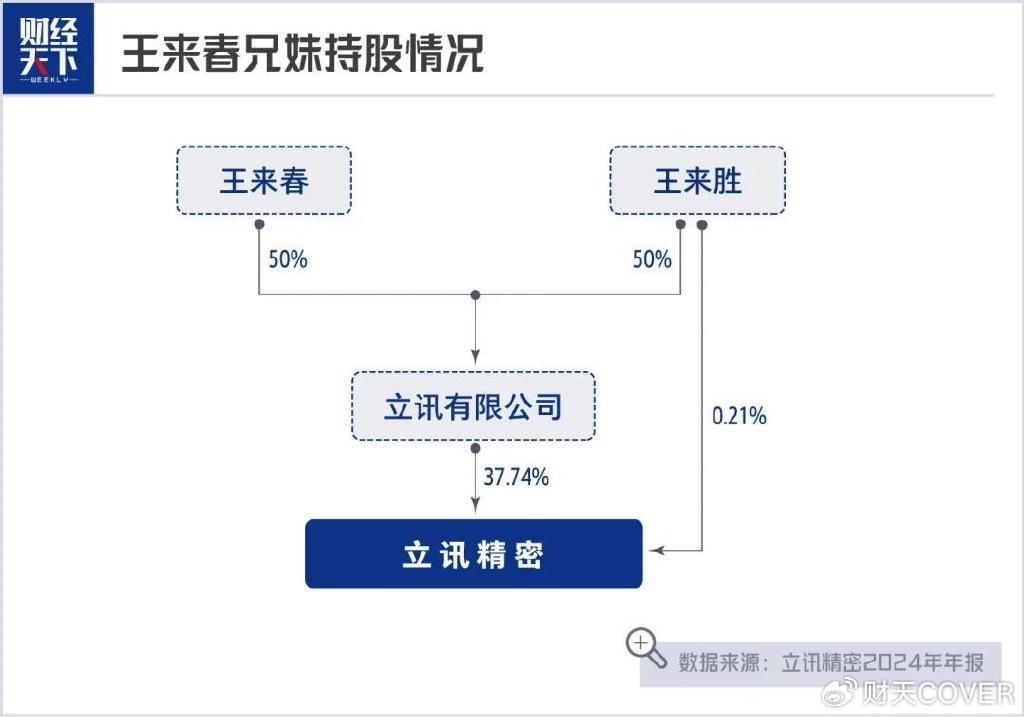 目前,立讯精密实际控制人王来春、王来胜直接与间接持有公司37.88%的股份。按9月26日4659亿元市值计算,兄妹两人身家已达1764亿元。倘若几年后股权激励计划得以实施,两人无疑又将身家大涨。