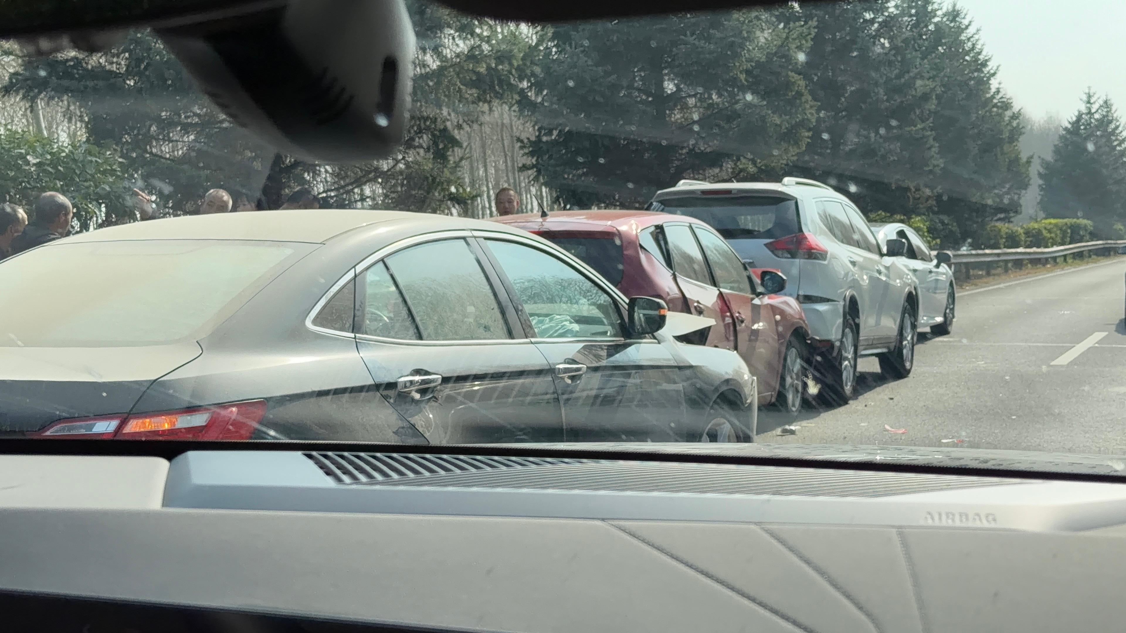 开到事故这儿了,前后不到1.5公里,三起事故,全是追尾,加一起9辆车……[允悲][允悲]
