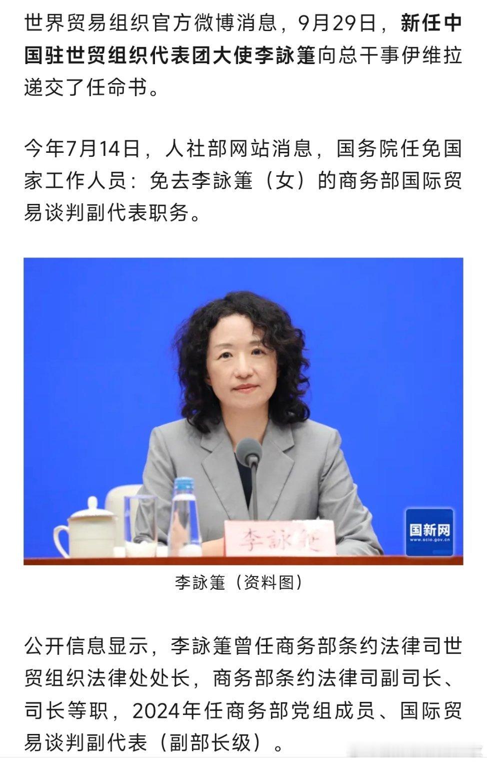 李詠箑任中国驻世贸组织代表团大使。热点现场