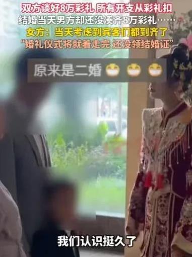 重庆,新娘马上就要进行婚礼仪式了,她的陪嫁是18万,还有一套房子,男方的彩礼是8万,他们谈好,酒席等所有开支都从彩礼扣,剩余的全部返还给婆家,然而婚礼当天,新郎却没有拿出8万彩礼,公公婆婆也没有拿钱,这个婚礼他们虽然都走完了仪式,却不欢而散。 新娘正在化的妆,她的婚礼仪式马上就要开始了,她内心激动着,远在陕西的亲朋好友们,他们都已经坐在大厅上,正等待着婚礼的开始,送上他们满满的祝福。 就在这时,新娘却得到了一个不好的消息,她的新郎,竟然没有带来那8万元彩礼,她一听就着急了,这婚礼马上就要开始了,那8万元彩礼是要摆给大家看的,没有那8万彩礼,这婚礼还怎么进行下去呀。 这是她期待已久的婚礼,她和新郎谈了那么久的恋爱,恋爱期间,新郎对她还有她的孩子都那么好,还那么细心,让她重新相信了爱情,她才有勇气重新走进婚姻。 为了这一次婚礼,她能把自己风风光光地嫁出去,她不但陪嫁18万,还陪嫁一套房子,除此之外,妹妹以及舅舅和姨姨们,他们都送了不少的陪嫁。 大家都希望新娘风风光光地出嫁,他们都以为新娘找到了可以真心待她的新郎,他们送上了满满的祝福。 如今新郎跟她说,8万元的彩礼他没有凑够,这实在让她难以接受。 其实这8万元彩礼,新娘从没有想过要拥有这一笔钱,只不过是想让婆家给一个态度,把彩礼摆出来,给她一个面子。 他们已经面对面地谈好了,这8万元彩礼只是摆给大家看,让亲朋好友们看看而已,事后彩礼的所有开支都从彩礼扣,剩下的钱她就返还给婆家。 新娘是真的认可新郎,认可婆家,觉得这一段婚姻将是自己的归宿,她真的带着自己的所有,想嫁入婆家,和新郎,和婆家一起好好过日子。 现在新郎却告诉她,他没有凑够彩礼,只能拿来2万元,可这2万元连酒席钱都不够,更何况8万元彩礼,是给亲朋好友们看的,如果没有摆出来,这让大家怎么看她呢。 大家肯定以为她是赶着要出嫁,倒贴也要出嫁,毕竟她陪嫁的东西,远远比这8万元彩礼多多了。 她对新郎很不满,新郎解释道,他以为父母有拿着8万元彩礼过来,所以他就没拿,他的父母又解释说,他们以为自己的儿子有,所以他们也没有拿钱过来,才造成了这样的误会。 婚礼马上就要开始了,8万元彩礼终究是没有着落,新郎说他会凑够钱付酒席钱的,至于8万元彩礼,他过后是会补给新娘的。 新娘也不想计较太多,她的亲朋好友从陕西而来,亲戚朋友们花的费用她都包了,花了这么多钱,一切也准备妥当,这个时候说什么也要把婚礼进行下去。 新娘也不再想这么多,糊里糊涂就和新郎把婚礼仪式都走完了。 可即使大家为了面子把婚礼进行完,那8万元的彩礼却成了女子的心结。 婚礼结束后,不但她,就连她的家人都心里有隔阂,即使新郎承诺过后会补那8万元彩礼,即使新郎一直在试图挽回。 但新娘却很纠结,到底要不要把这段婚姻走下去,因为他们就算是把婚礼进行了,他们还没有领结婚证,她可以结束这段感情,结束这段婚姻。 不少人告诉她,婚前没有的,婚后更是不会有,而对于新娘来说,当时走仪式的东西没有给,就算是过后补也没有意义,至于给不给她都不在乎了。 她现在一直在纠结,这段感情是否值得继续走下去,毕竟在婚礼这么重要的场合,新郎和婆家却没有信守承诺,她害怕自己一旦领了结婚证,伴随她的将又是一段失败的婚姻。 那么如何从法律的角度来看待新娘所遇到的事情呢? 首先,新娘和新郎已经约定好8万的彩礼,是在婚礼上摆给大家看的,那么新郎和婆家人就应当说话算数,守诚信,这是一个家庭的家风体现。 《民法典》第1043条规定:家庭应当树立优良家风,弘扬家庭美德,重视家庭文明建设。夫妻应当互相忠实,互相尊重,互相关爱;家庭成员间应当敬老爱幼,互睦、文明的婚姻家庭关系。 毕竟一个有好的家风的家庭,他们肯定是会信守承诺的。 其次,对于彩礼,如果没有领结婚证,或者不在一起生活,那么彩礼终究是要返还的。 《关于适用<民法典>婚姻家庭编的解释(一)》第5条规定: 当事人请求返还按照习俗给付的彩礼的,如果查明属于以下情形,法院应当予以支持: (一)双方未办理结婚登记手续; (二)双方办理结婚登记手续但确未共同生活; (三)婚前给付并导致给付人生活困难。 其实,新娘在乎的不是彩礼,是新郎和婆家的态度,毕竟她就没打算要这8万元的彩礼,更何况如果不在一起生活是要返还彩礼的。 对于彩礼,确实如此。如果没有结婚,如果没有生活在一起,新娘还是要返还彩礼的。 那么你觉得新娘和新郎应该在一起吗?#头号创作者激励计划#