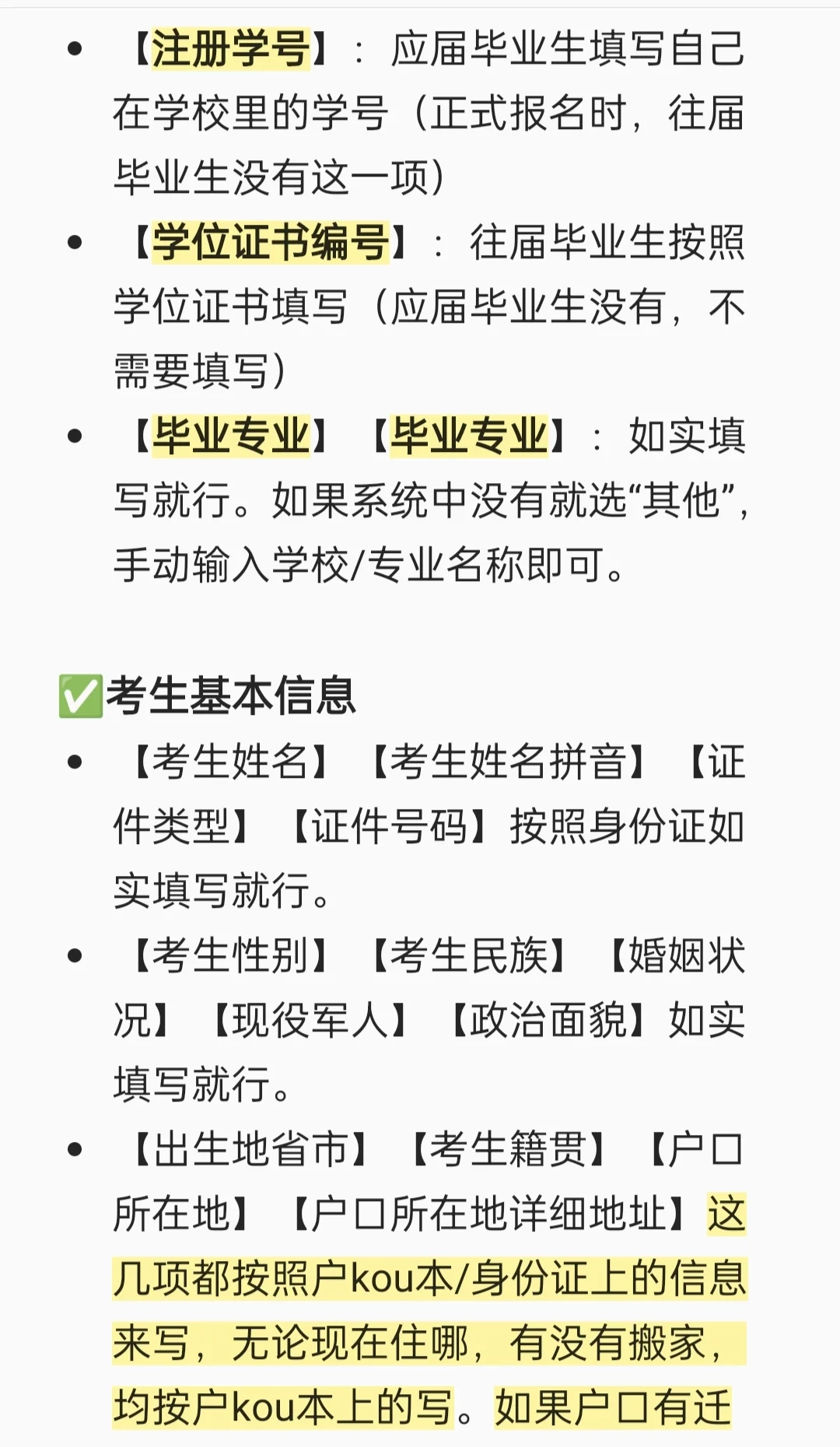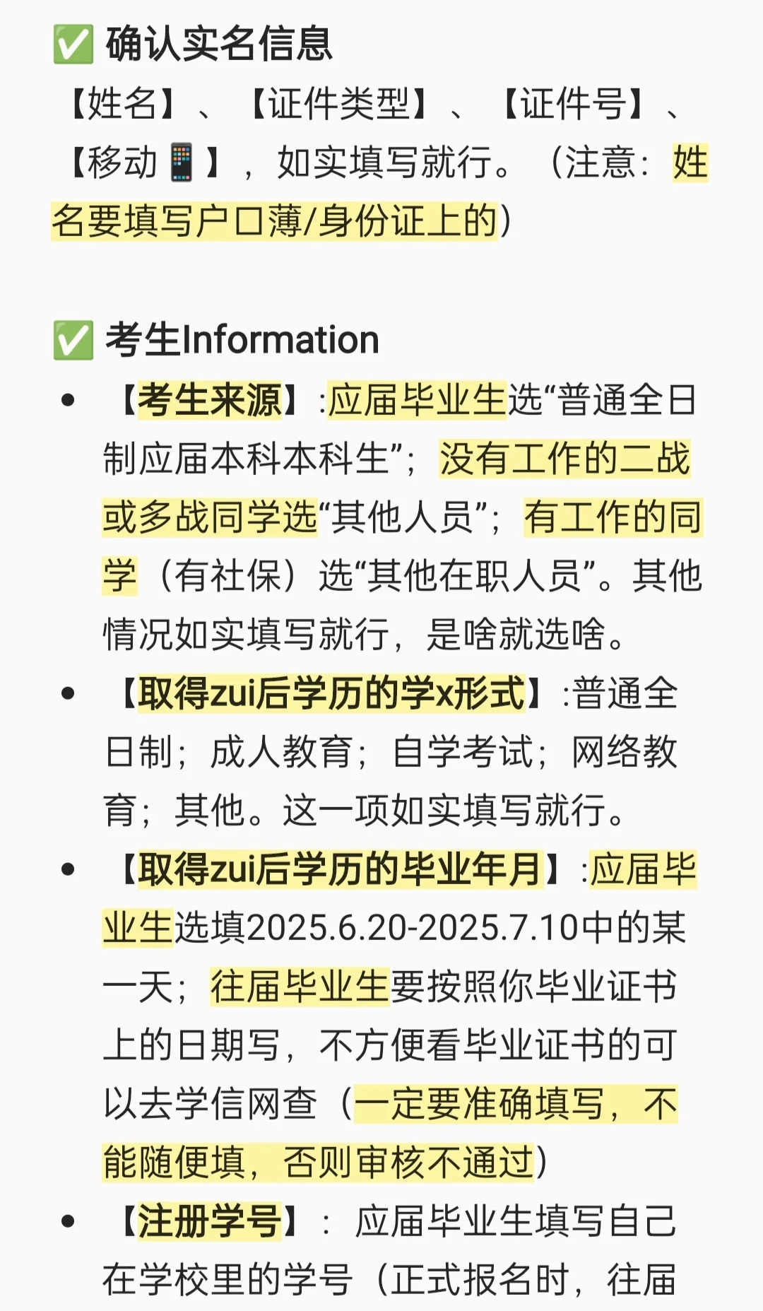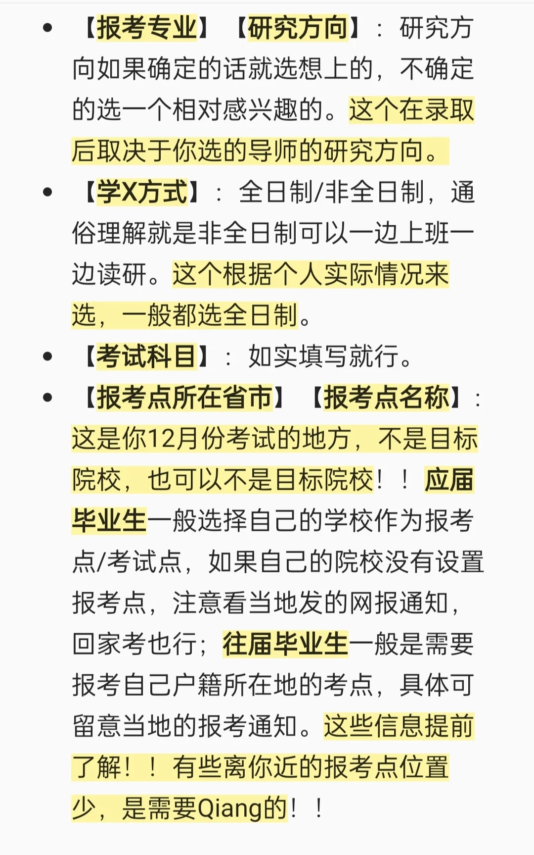 以上⬆️是考研预报名完整流程,报名的时候直接跟着走就可以啦。各个模块需要注意的地方我也都标记出来了,大家认真看,都不会有太大的问题!