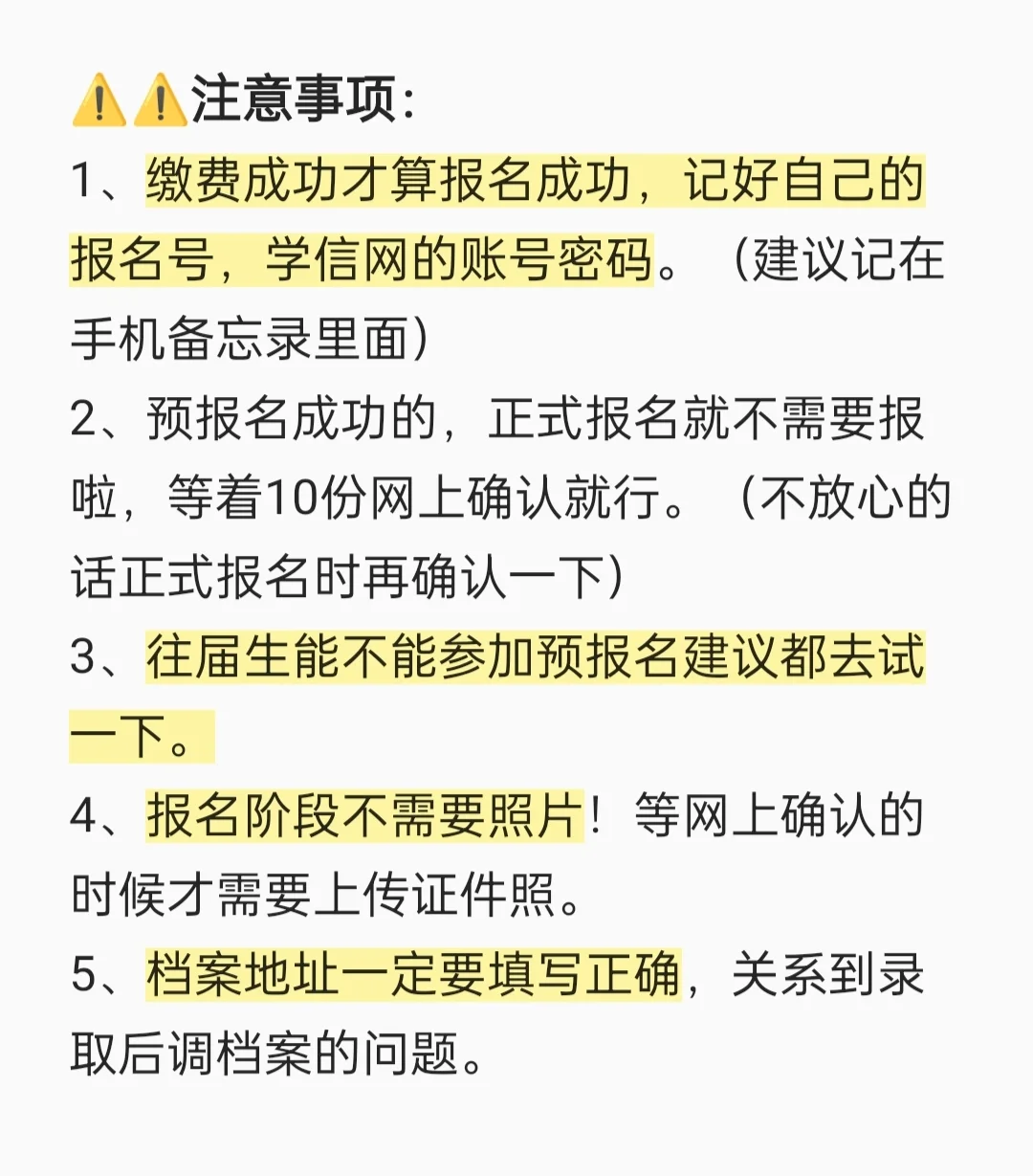 ⚠️个人建议只要确定好了目标院校,预报名就抓紧时间报,有些考点位置有限,是需要Qiang的。一定要记得及时缴费❗❗缴费成功才算报名成功!