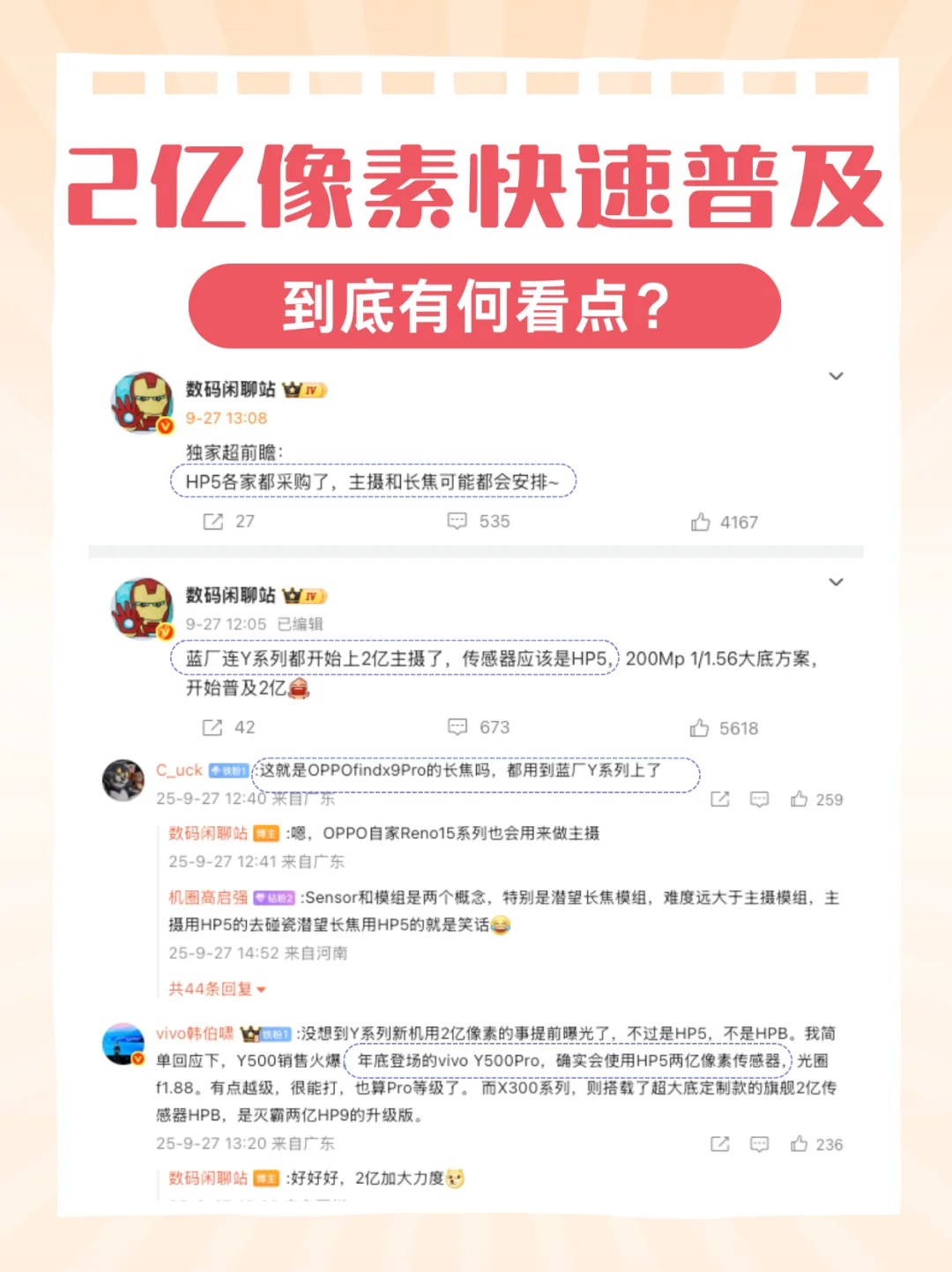 原来秘密藏在“传感器”里!最近蓝厂猛料频出:vivo Y500 Pro 将搭载HP5传感器,实现2亿像素中端普及!更秀的是,这颗HP5还是OPPO Find X9 Pro等旗舰用上的同款传感器