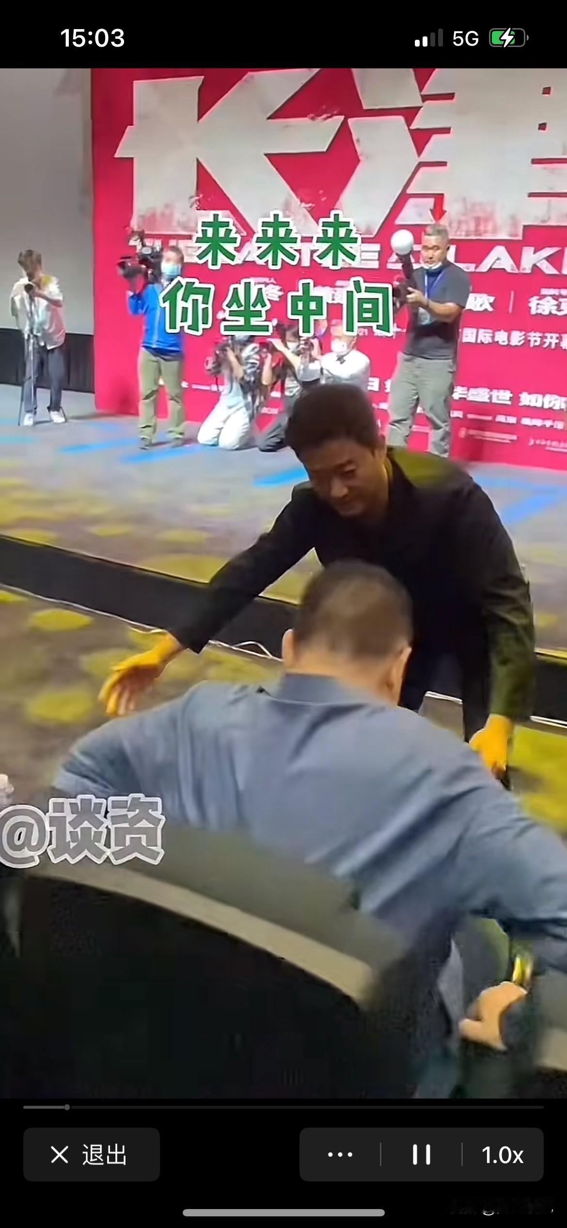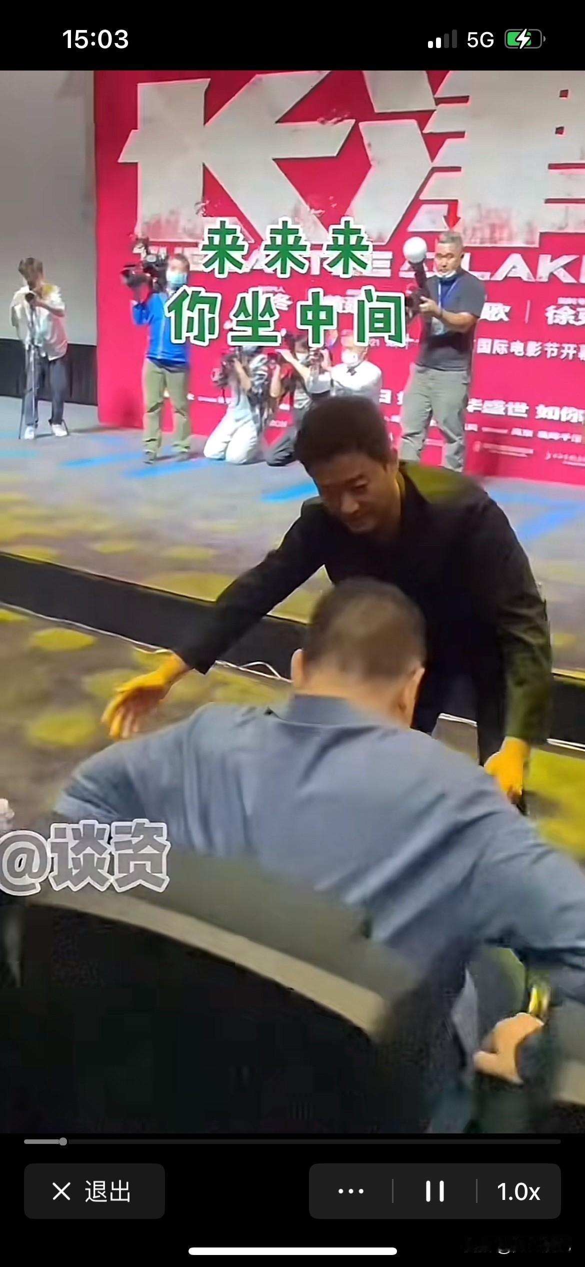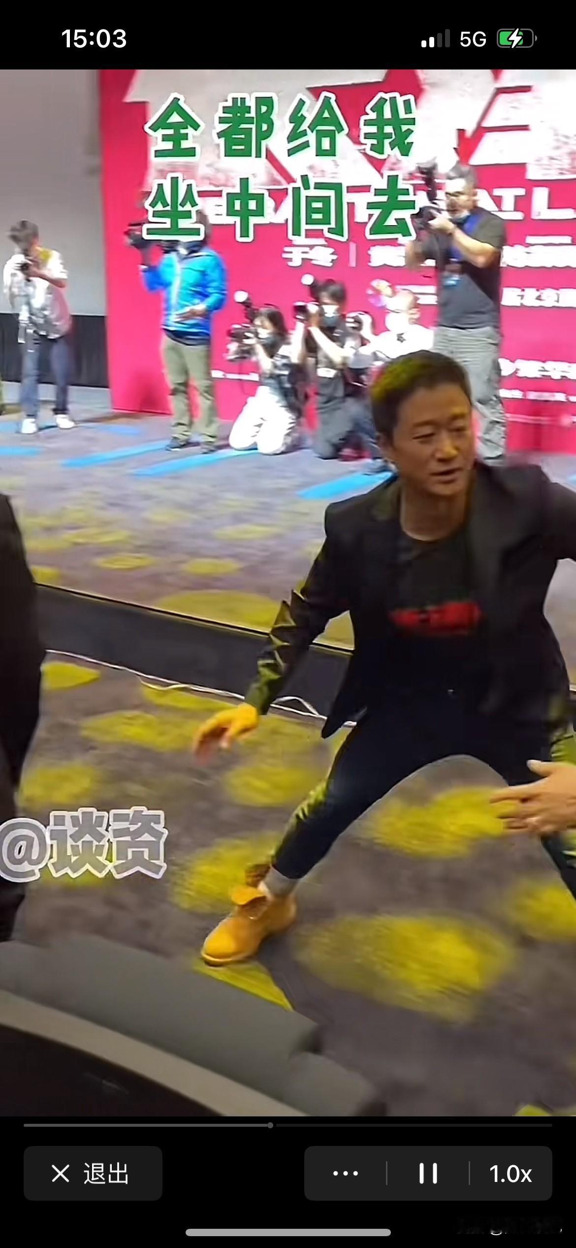 吴京老师在现场充当工作人员,操碎了心,真的很想骂一下举办方,难道节目组不知道这些是大牌明星,怎么回事的,就没有工作人员了吗?让吴京这种顶级演员忙前忙后的安排,真的不应该。 好像是抢了工作人员的工作,装了跟工作人员似的自己坐到角落,其实他干的这些活就是无用功。