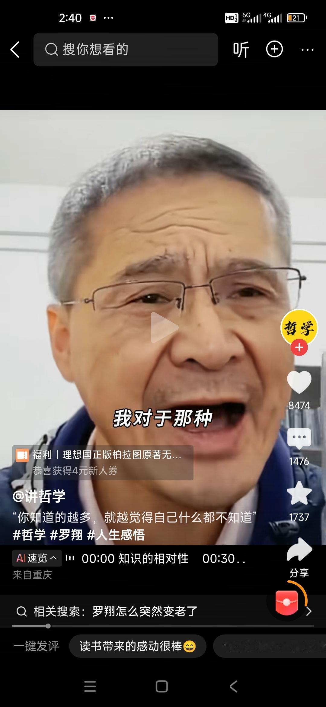 今天突然看到许久没有露面的罗翔老师,头发花白,脸上的皱纹也多了许多,突然让我感到鼻子发酸,眼睛充满泪水!我知识浅薄!他知识渊博! 但就是因为知识的渊博让他比我更痛苦!他忧国忧民,看到许多,可是他自己却很渺小,不能改变任何,所以才会在自媒体上口吐真言,让大家明白生活的本质。 为大家排解疑惑!他跟郑教授一样值得尊敬