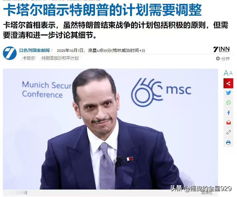 特朗普结束战争的计划包括积极的原则,但需要修改并再接再厉——卡塔尔首相穆罕默德·