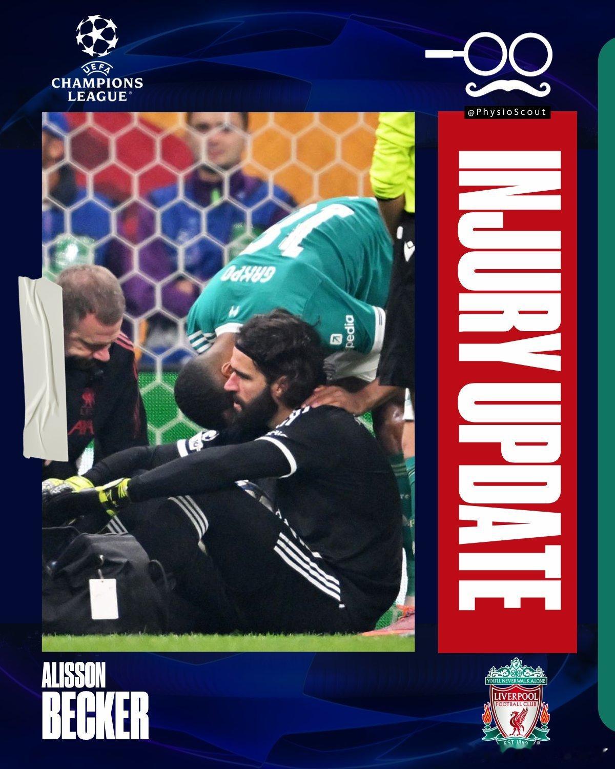 伤病推透露在利物浦对阵加拉塔萨雷的比赛中,阿利松下半场初段因伤被换离场。此次受伤
