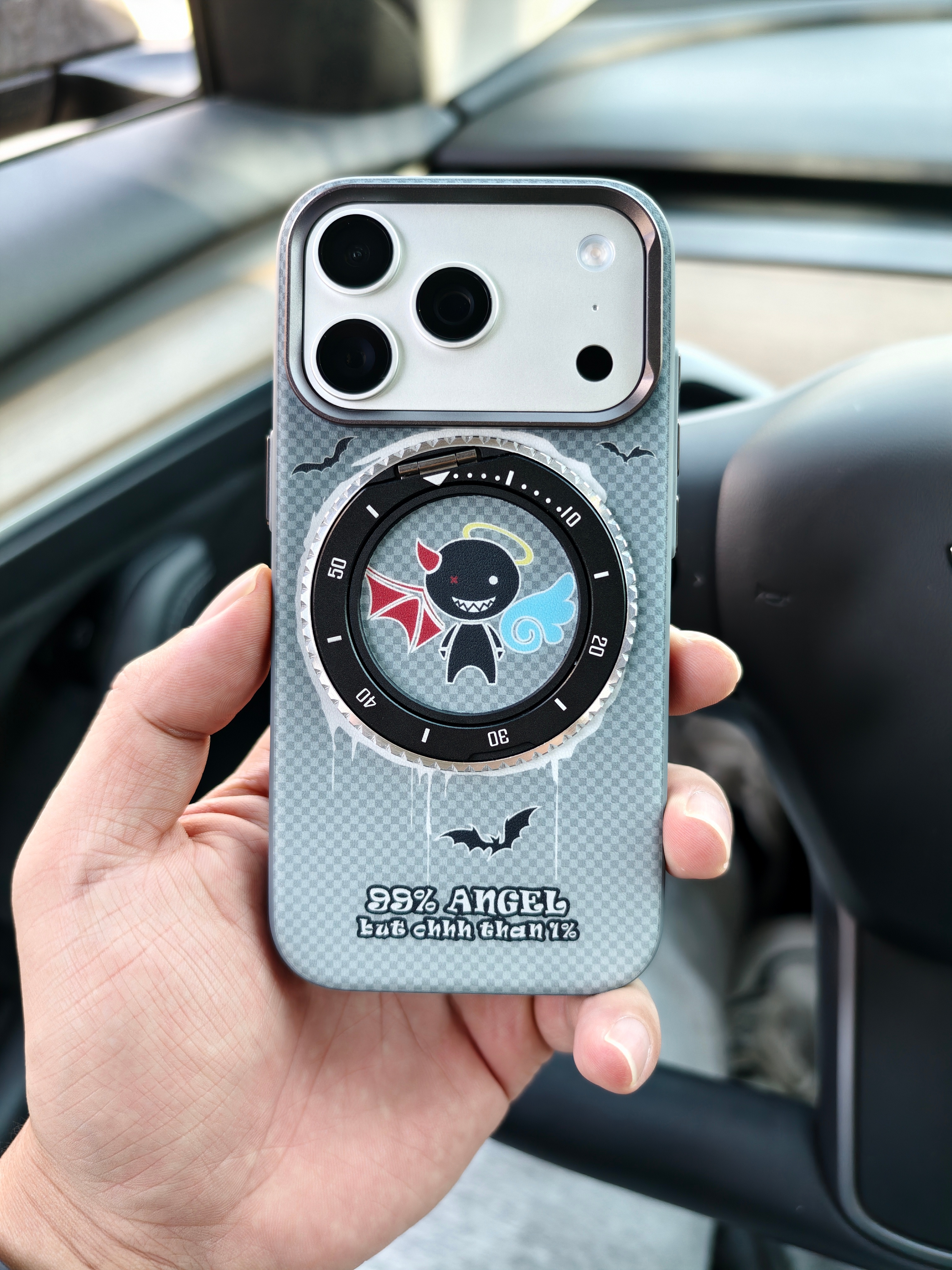 iPhone 17 Pro还没到,就早早收到了洞幺幺恶天使磁吸壳,带支架,调节方向的时候哒哒哒很解压~