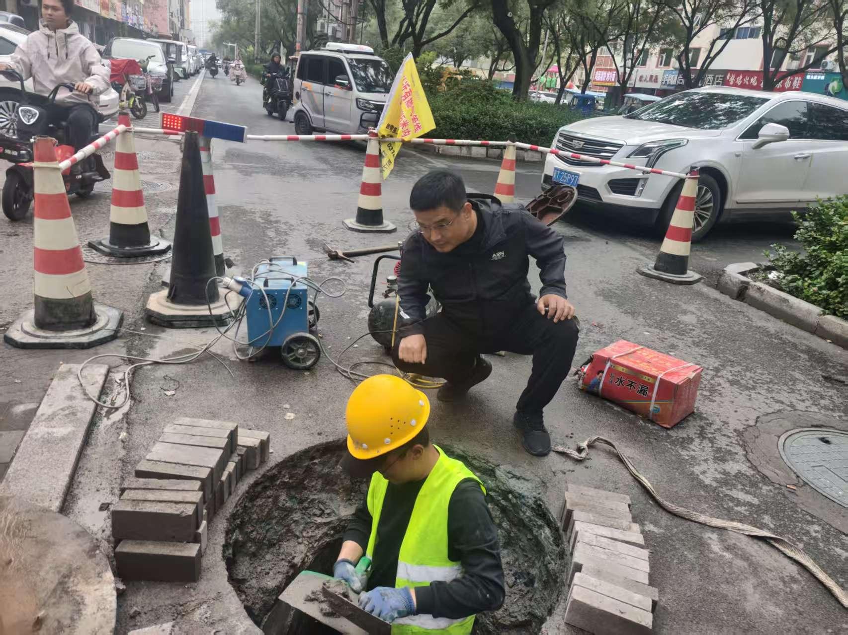 除了带领2个排查班组对主城区排水管网进行全方位巡查摸排,及时处置各类突发问题,焦尚峰还肩负着专业施工管理人员的职责。节日期间,主城区部分道路排水设施提升改造项目仍在紧张推进,他全过程跟进项目施工,从施工材料到施工质量到完工检测每一个环节他都严格把关。“排水设施提升改造关系到城市长远发展,直接影响着市民的日常生活,哪怕是节假日,标准也不能降、要求也不能松。”焦尚峰的话语朴实却充满力量。