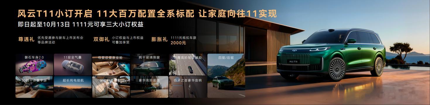 舒适方面两款都到位:零重力副驾、256色氛围灯、主动降噪一应俱全,出门就像移动头等舱!同步开启小订的风云T11也超香,1111元直接抵2000,还能叠权益,大六座设计标配百万级配置!