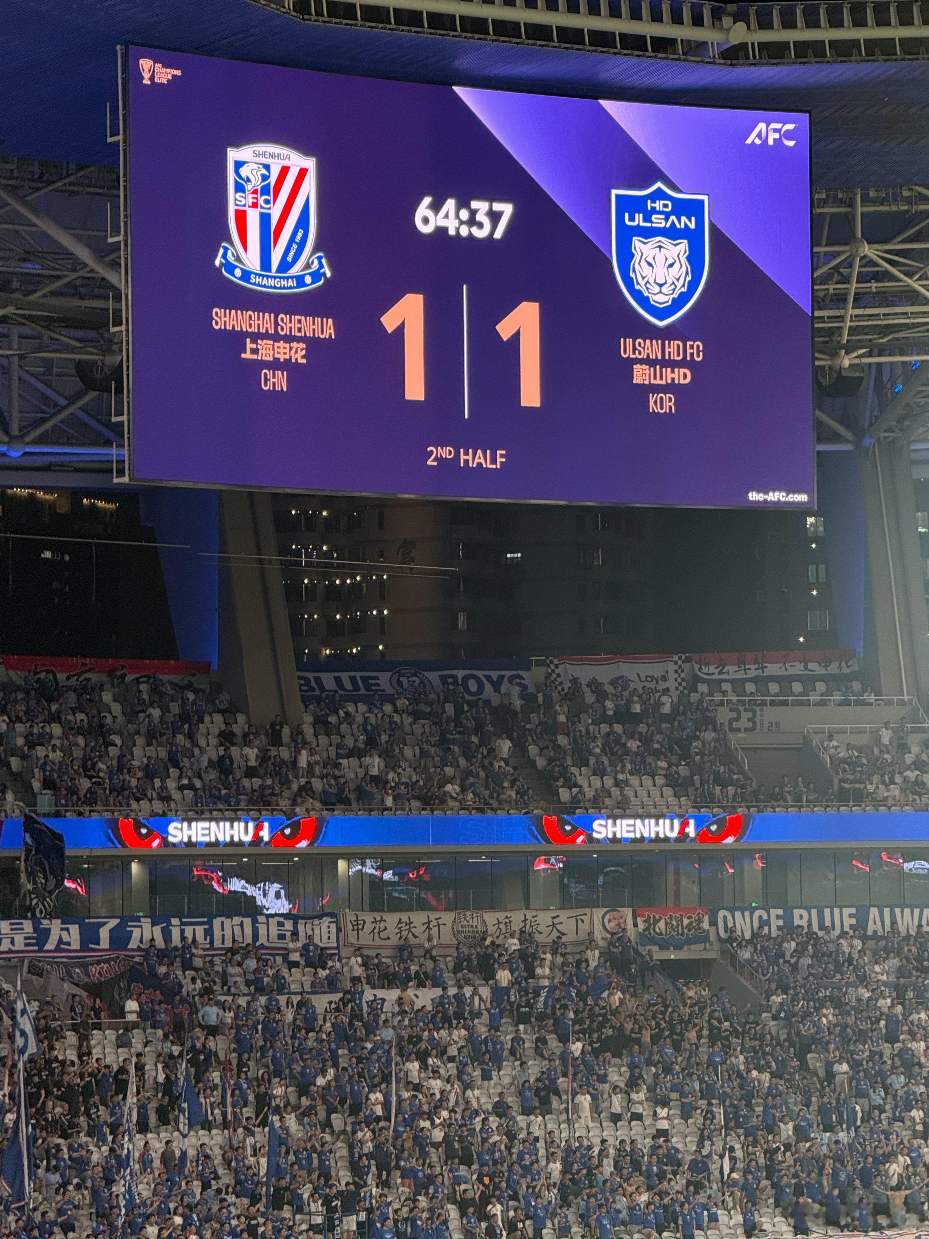 对方右路传中,瑞典外援进球。1比1。亚冠精英联赛上海申花vs蔚山hd
