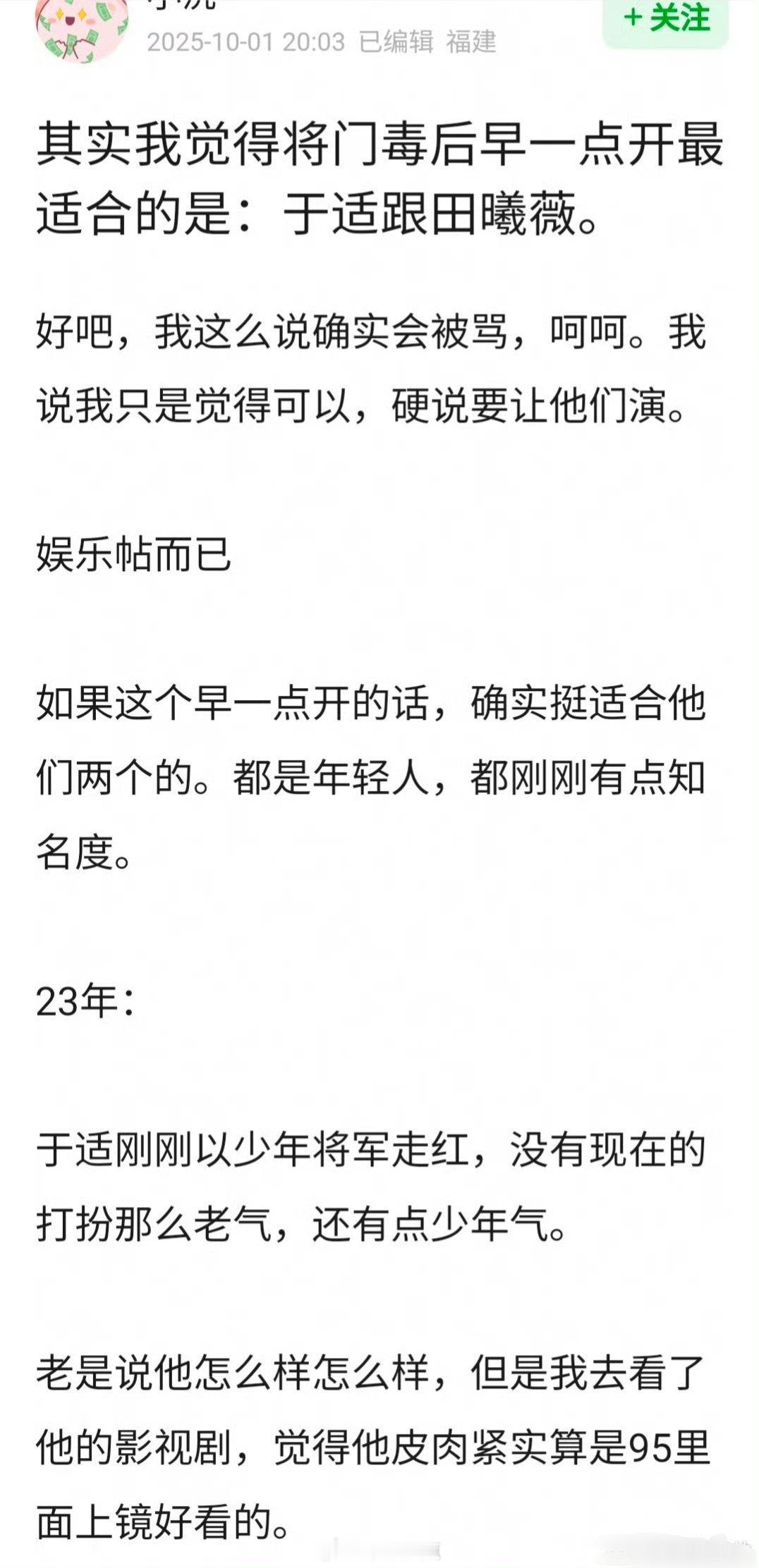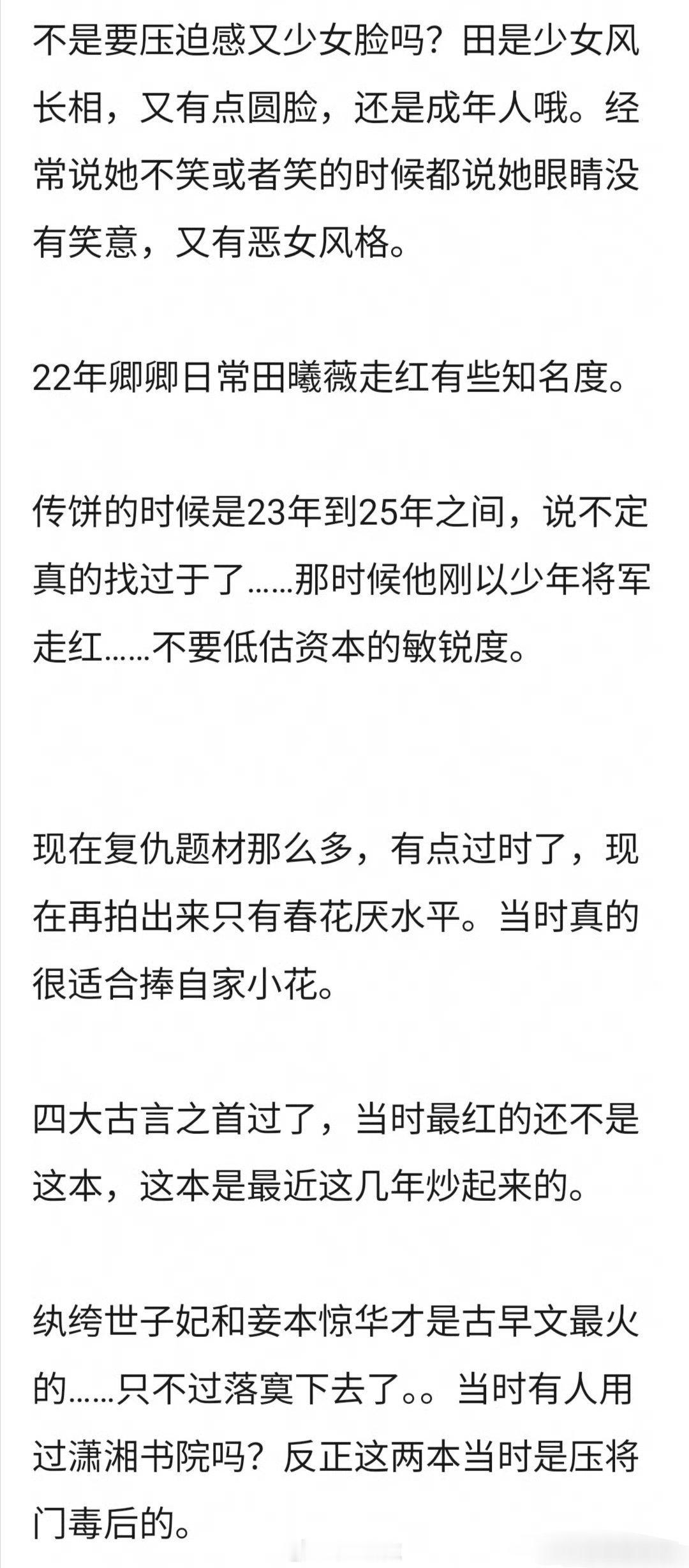 网友说 最适合将门毒后 的,是23年的田曦薇和于适,🈶道理吗?