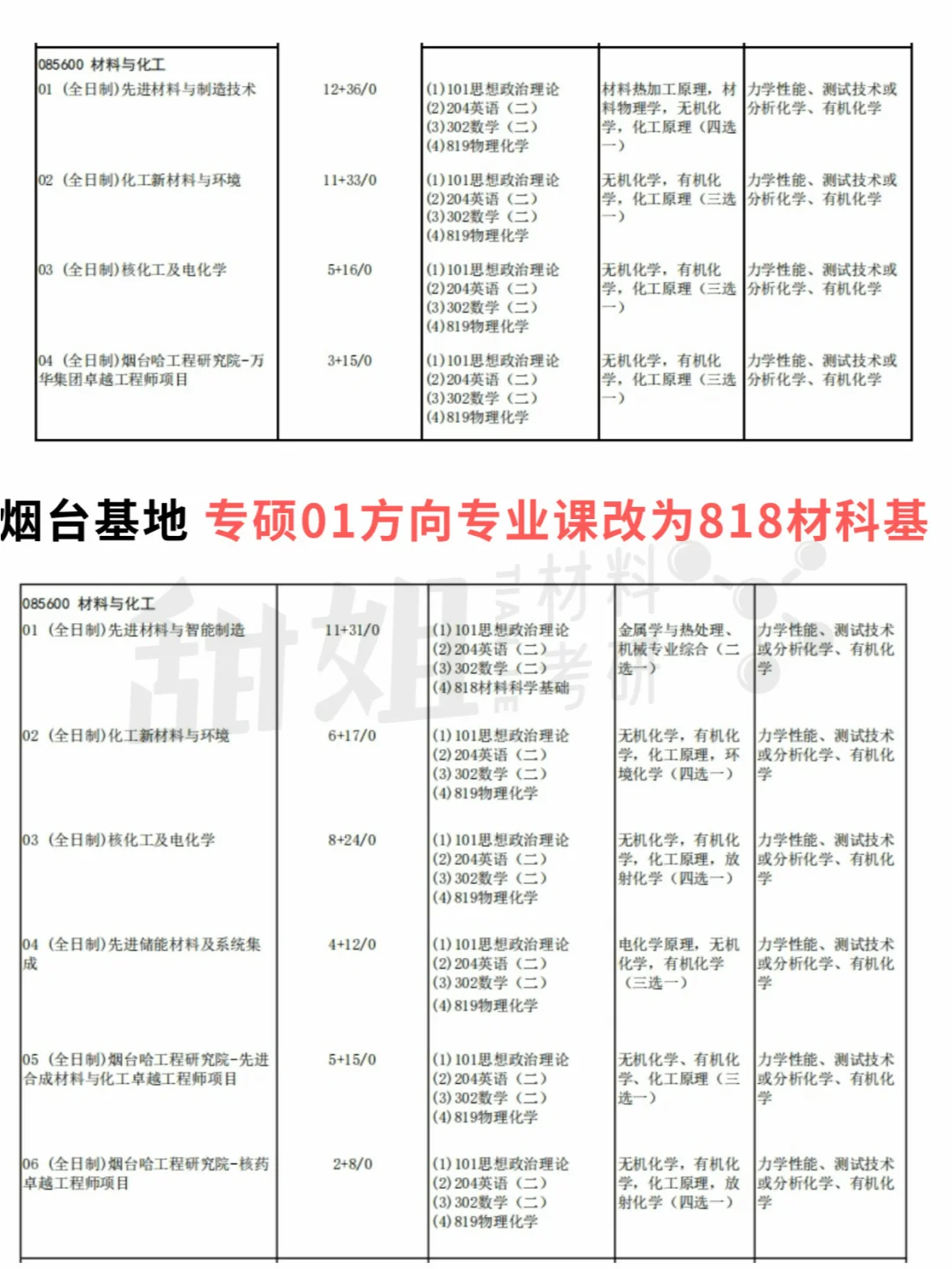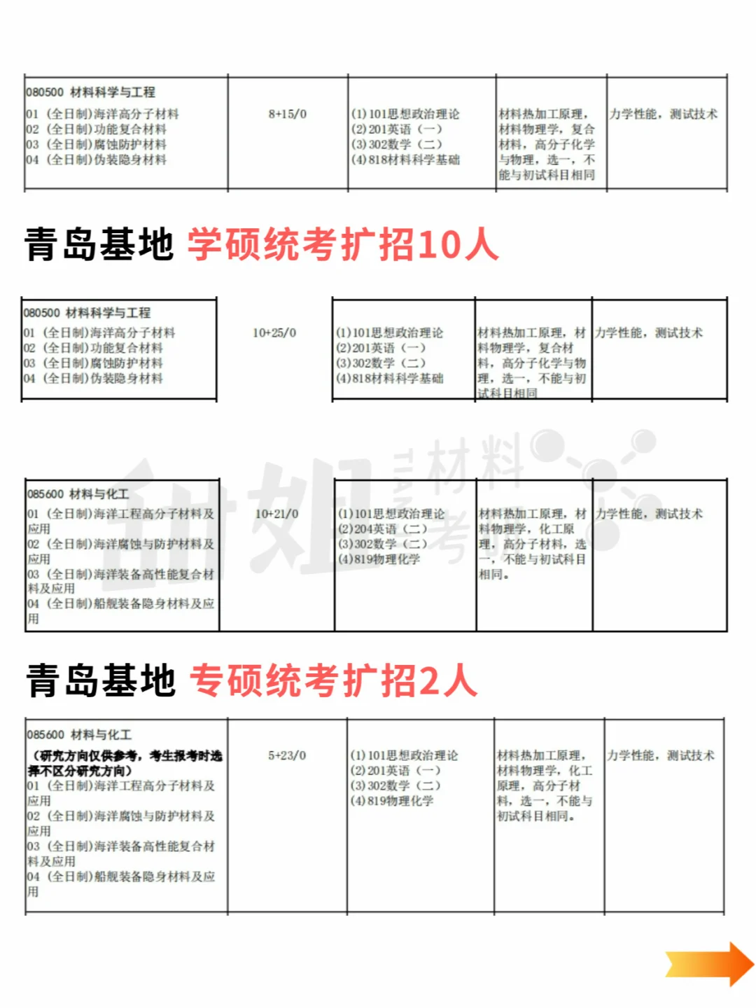哈尔滨工程大学公布了今年的招生目录,大部分专业统考招生人数增加,烟台研究院专硕01方向专业课改考为材科基。想要报考的同学抓紧机会啦!