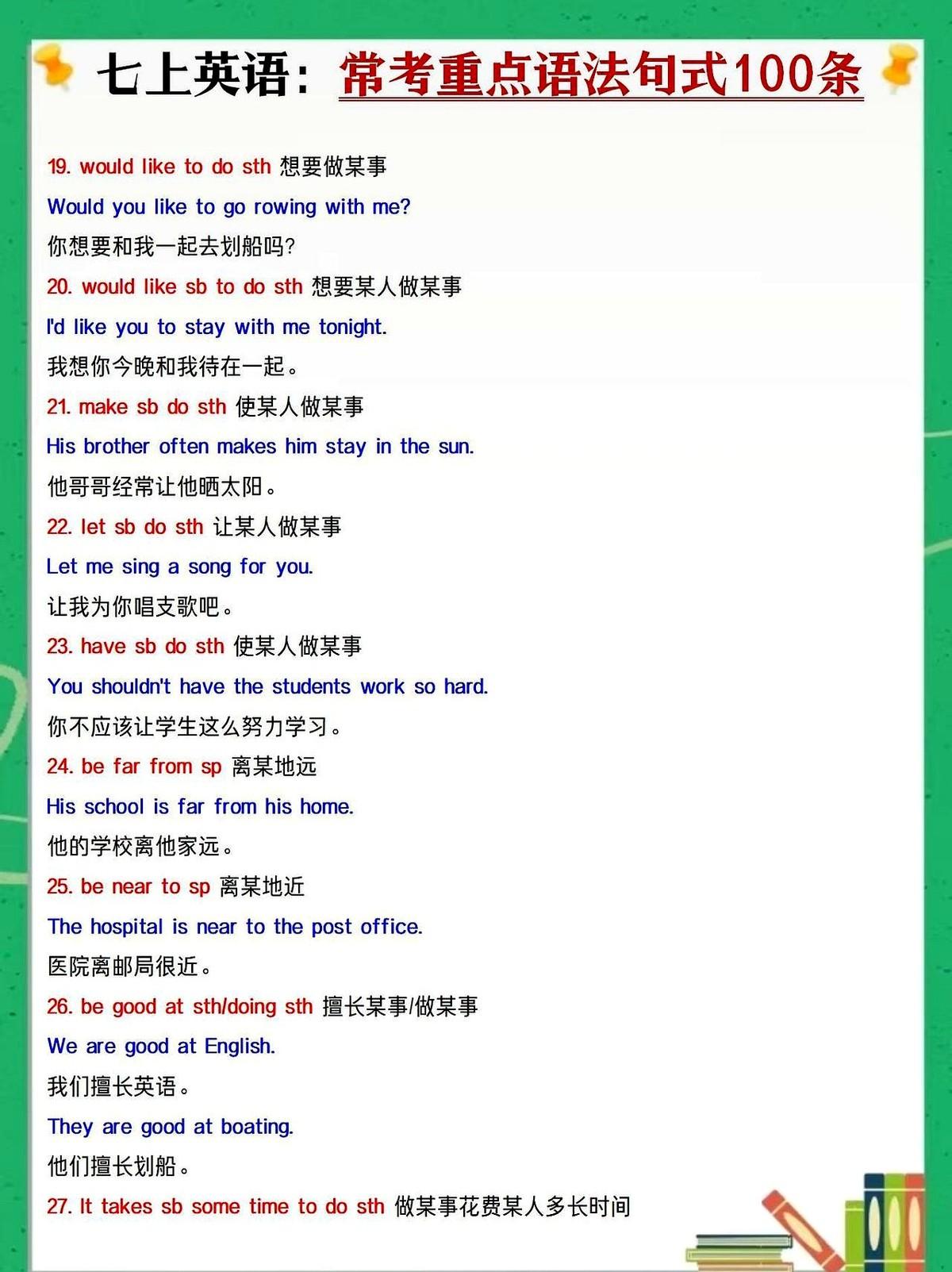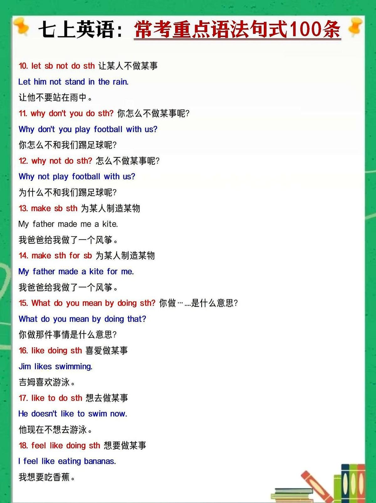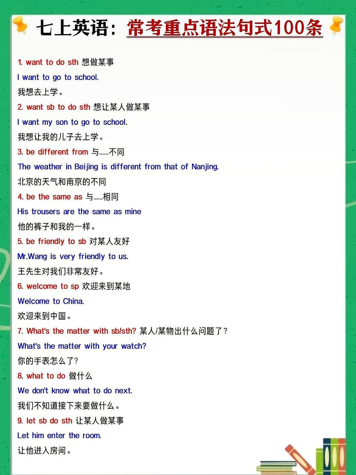 七年级英语考试不再只考“背得熟”,而是考“用得对”。 你孩子背了100条句式,