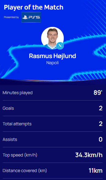赛后,他也被欧足联技术小组评选为本场比赛的全场最佳球员。