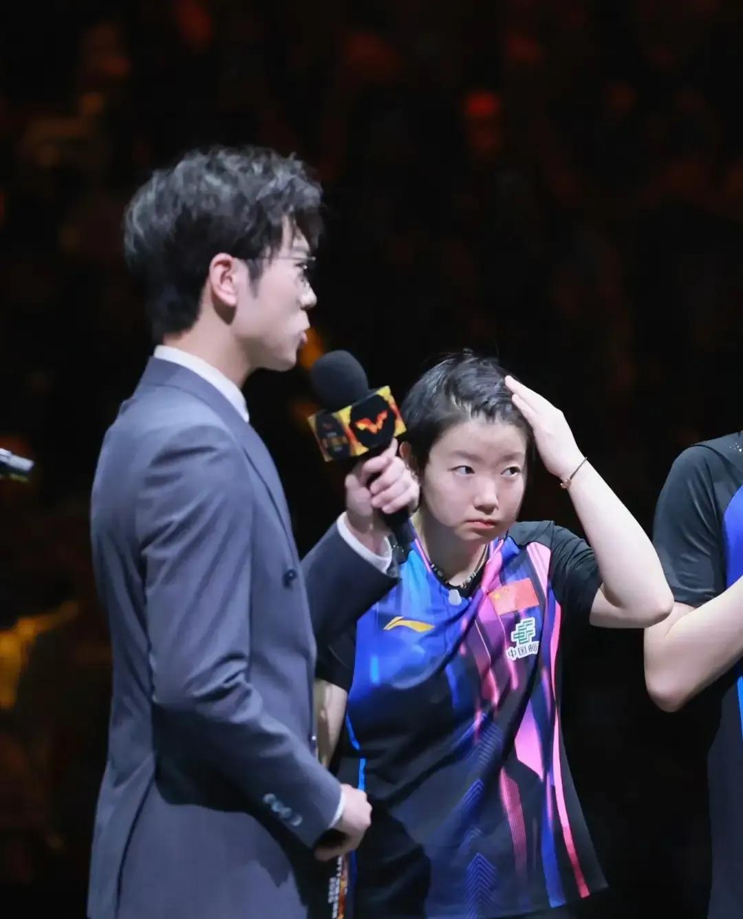 这下北京大满贯现场的小插曲, 全国网友都看乐了! 孙颖莎盯着主持人目不转睛的样