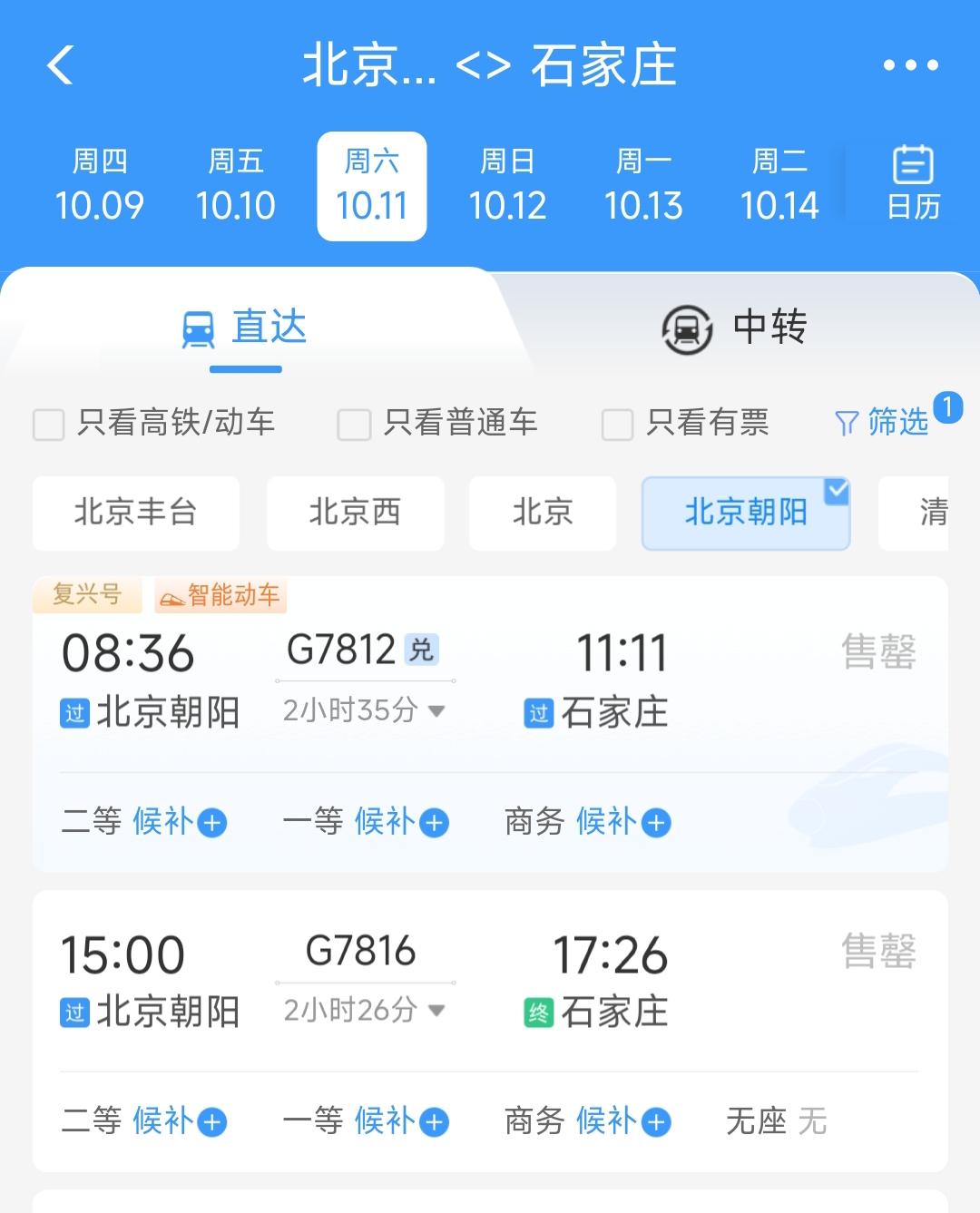 实际上北京朝阳站并不是宇宙的尽头,这里还有直达石家庄、邯郸等城市的高铁车次。既然北京朝阳站能直达邯郸,那么同样也能直达郑州、武汉、长沙、广州等城市。 想到这里不禁感慨为何辽宁朝阳、阜新的高铁列车最远只能到达北京朝阳站,而不能去往南方城市呢?最近我思考了3天3夜真的难以理解。