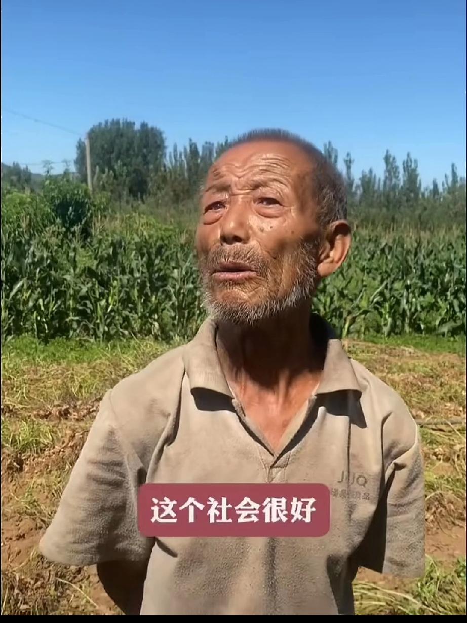 “这个社会很好只要动弹就有饭吃,只要不懒有这么点地你种上就饿不煞你”大爷的一番话不知说出了多少农民的心声? 大爷很乐观容易满足,吃饱穿暖是他的所求,这才是底底道道的农民大爷,种了一辈子地最该感谢的是这个社会,是当今社会给了他今天的幸福生活,在他心没有金钱的欲望,种桩稼就是钱,善良的大爷三观很正,他的笑容可以治愈很多不知满足的人,存在这种满足感的人大多都是老辈人从少吃没喝的年代走过来的吧!