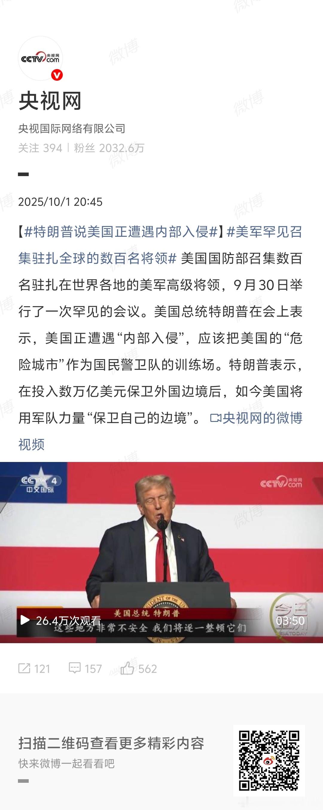特朗普放狠话称要做不可逆转之事军工复合体的经费减一点不好么