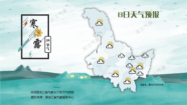 8日:伊春、鹤岗、佳木斯、鸡西多云有阵雨,其它地区晴有时多云。