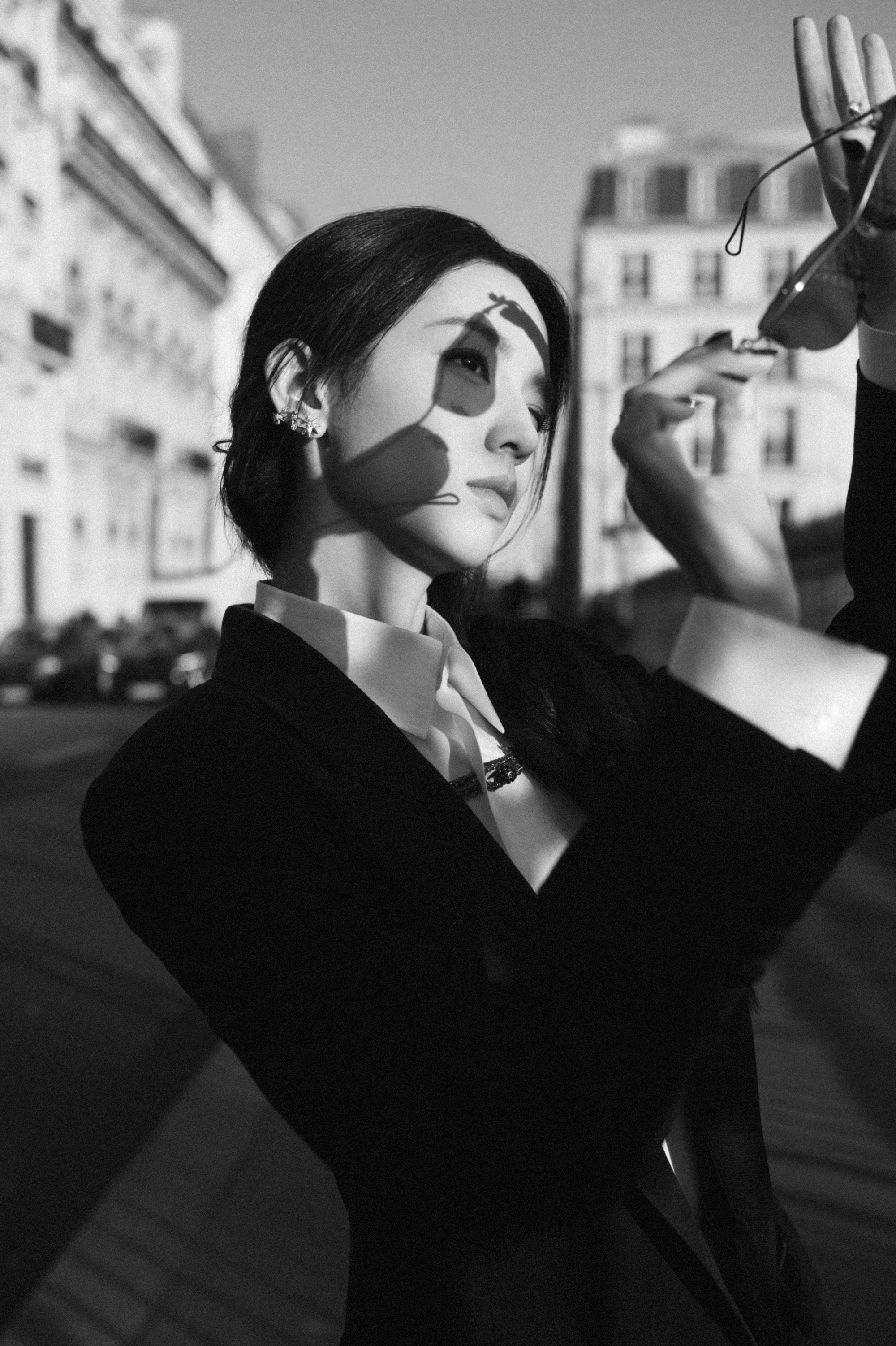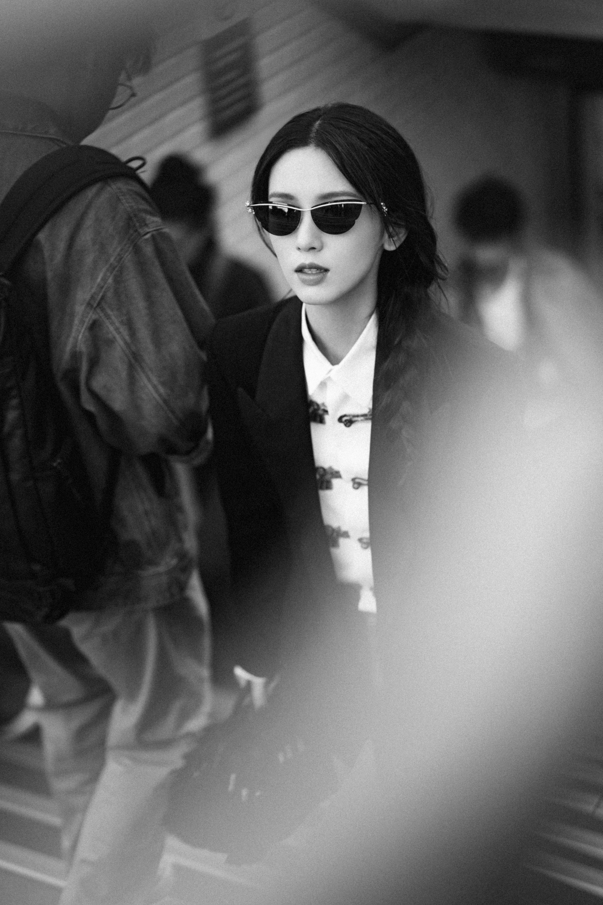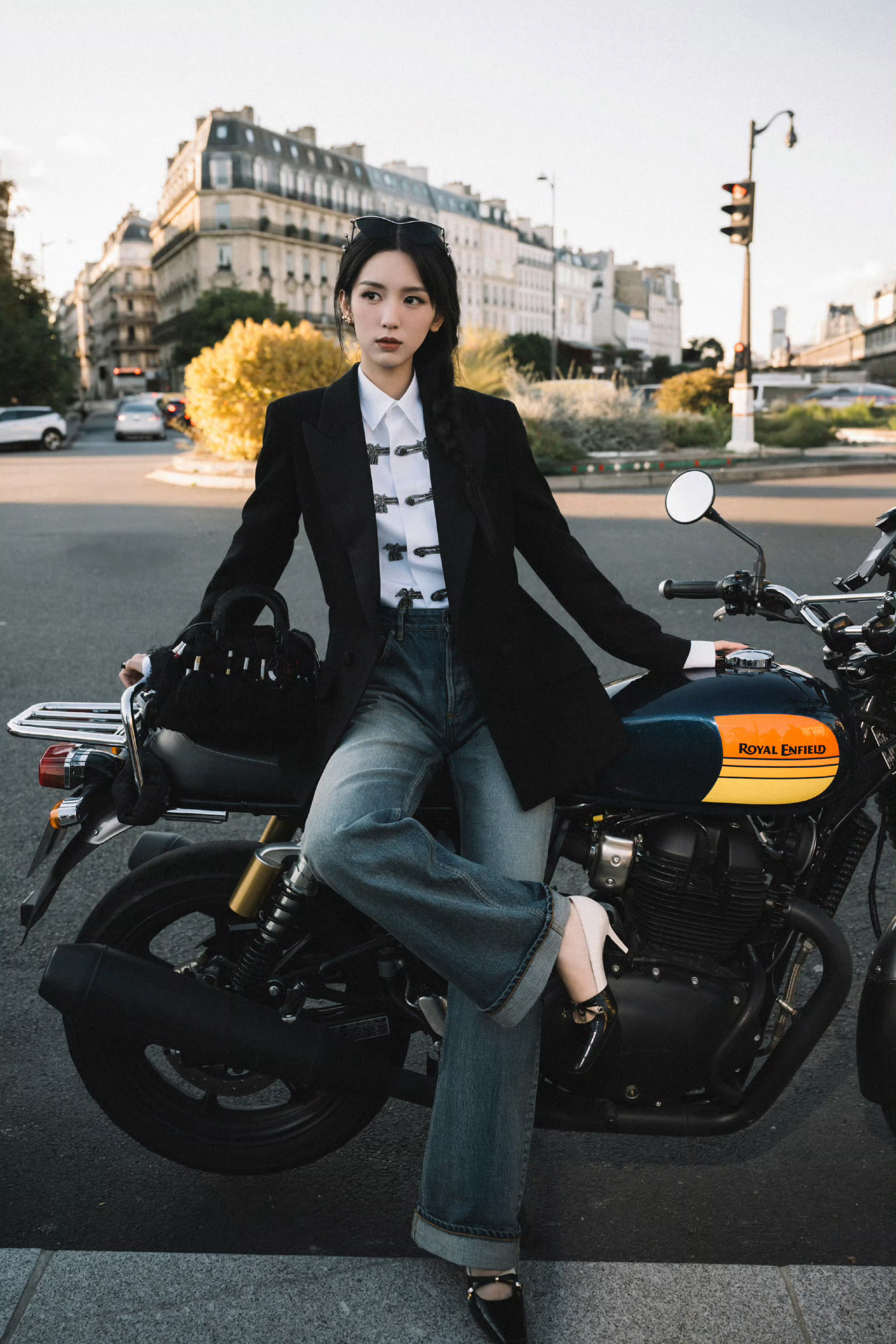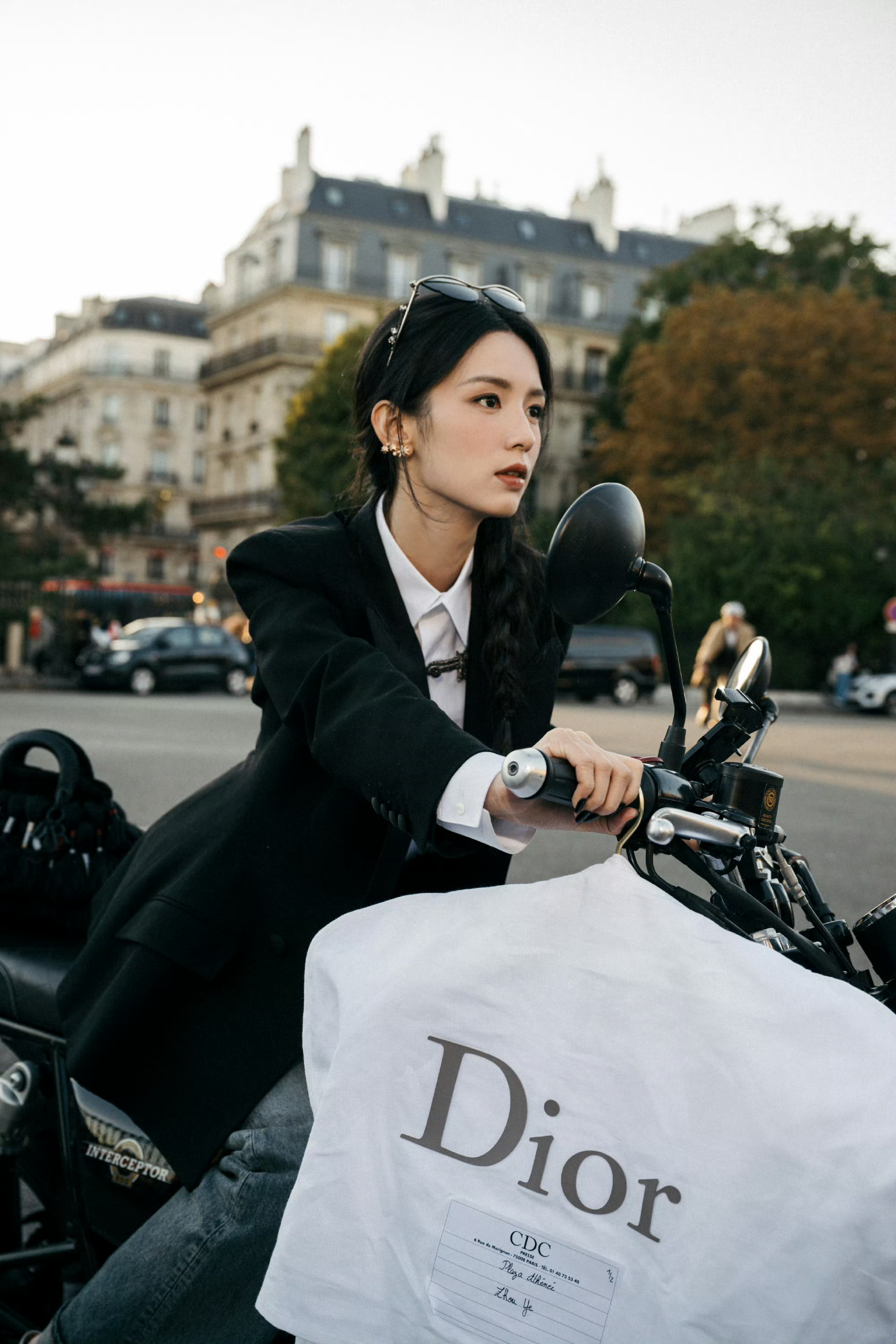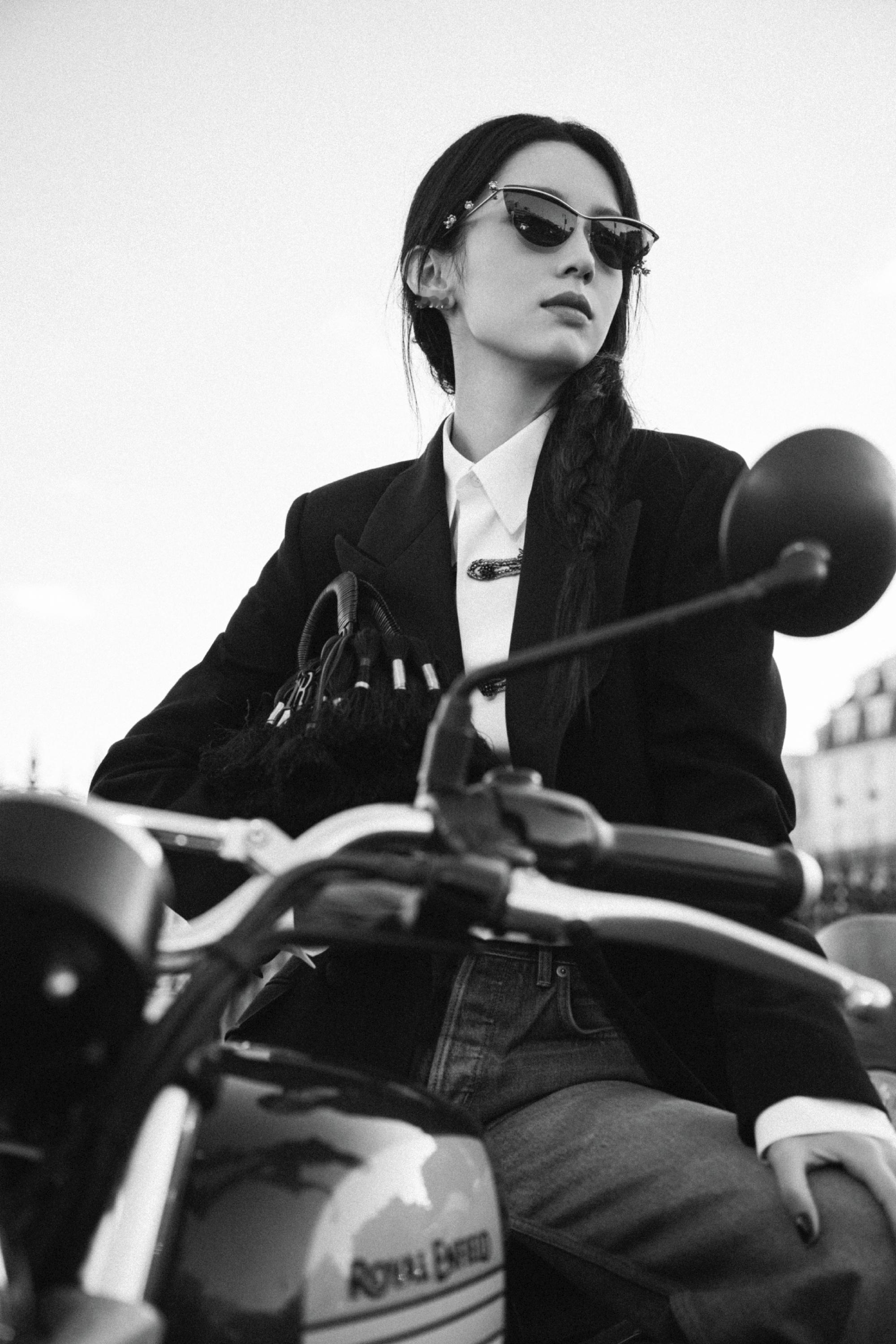 周也演绎 Dior机车系列:黑色皮夹克+修身皮裤+马丁靴