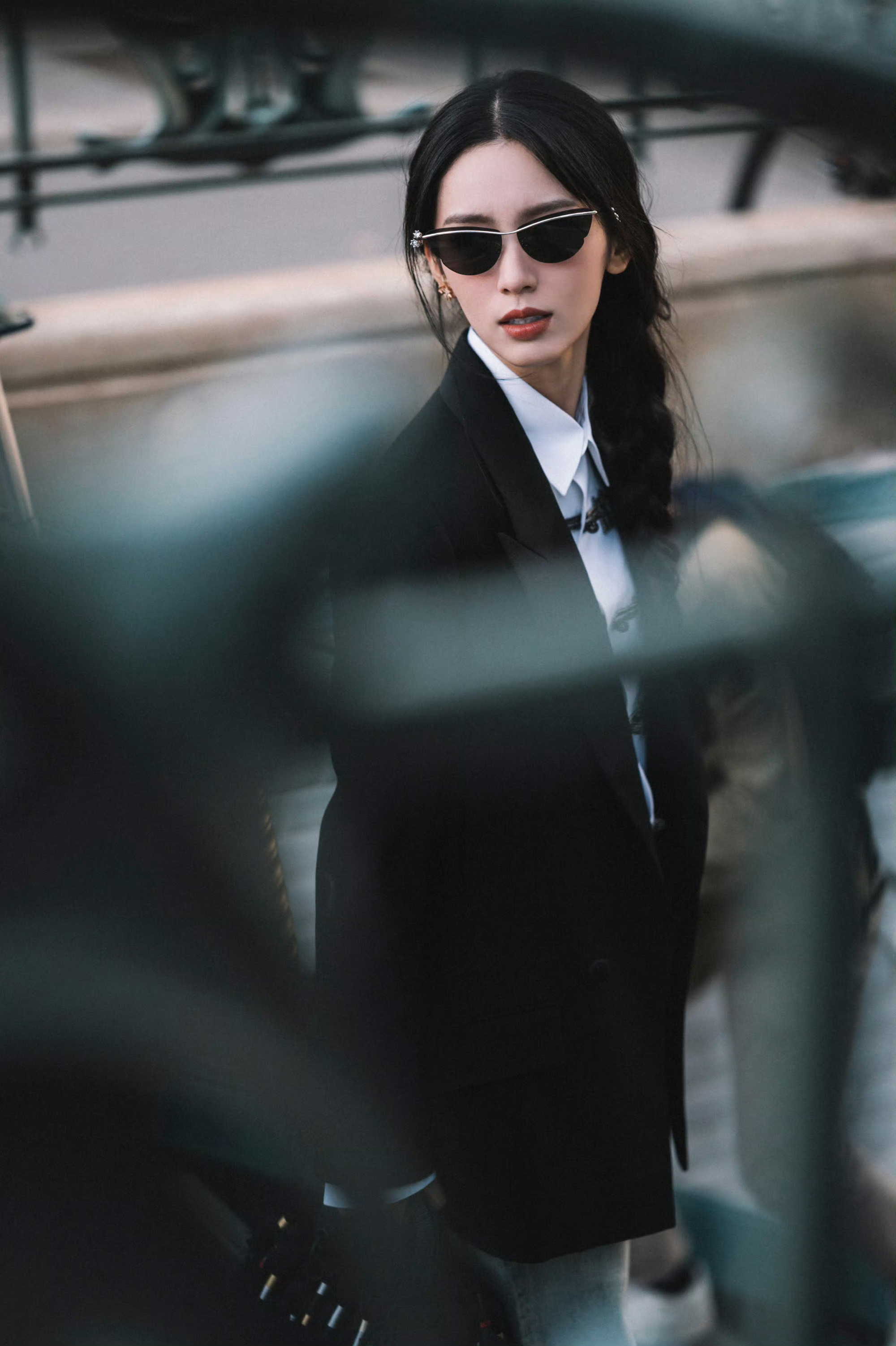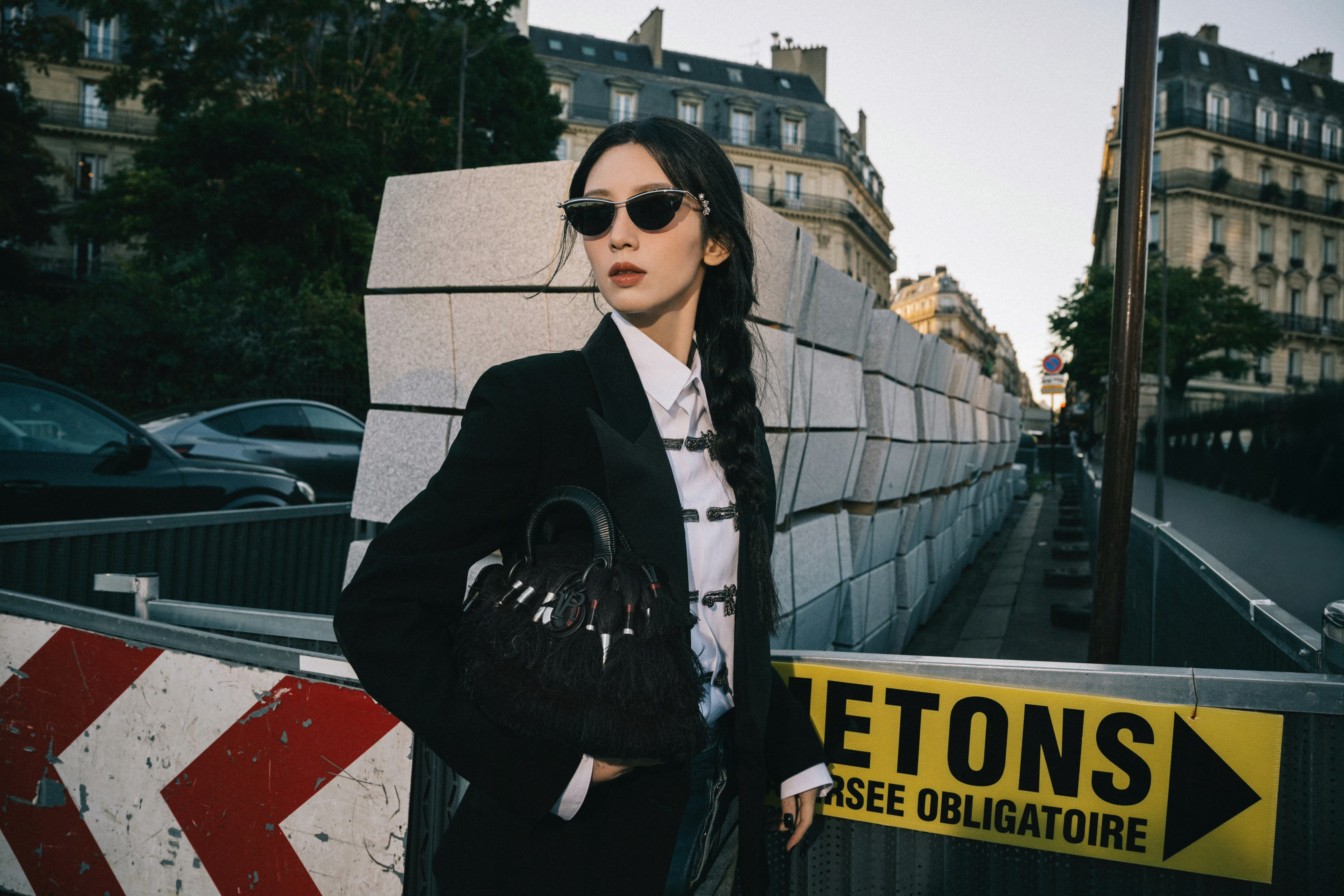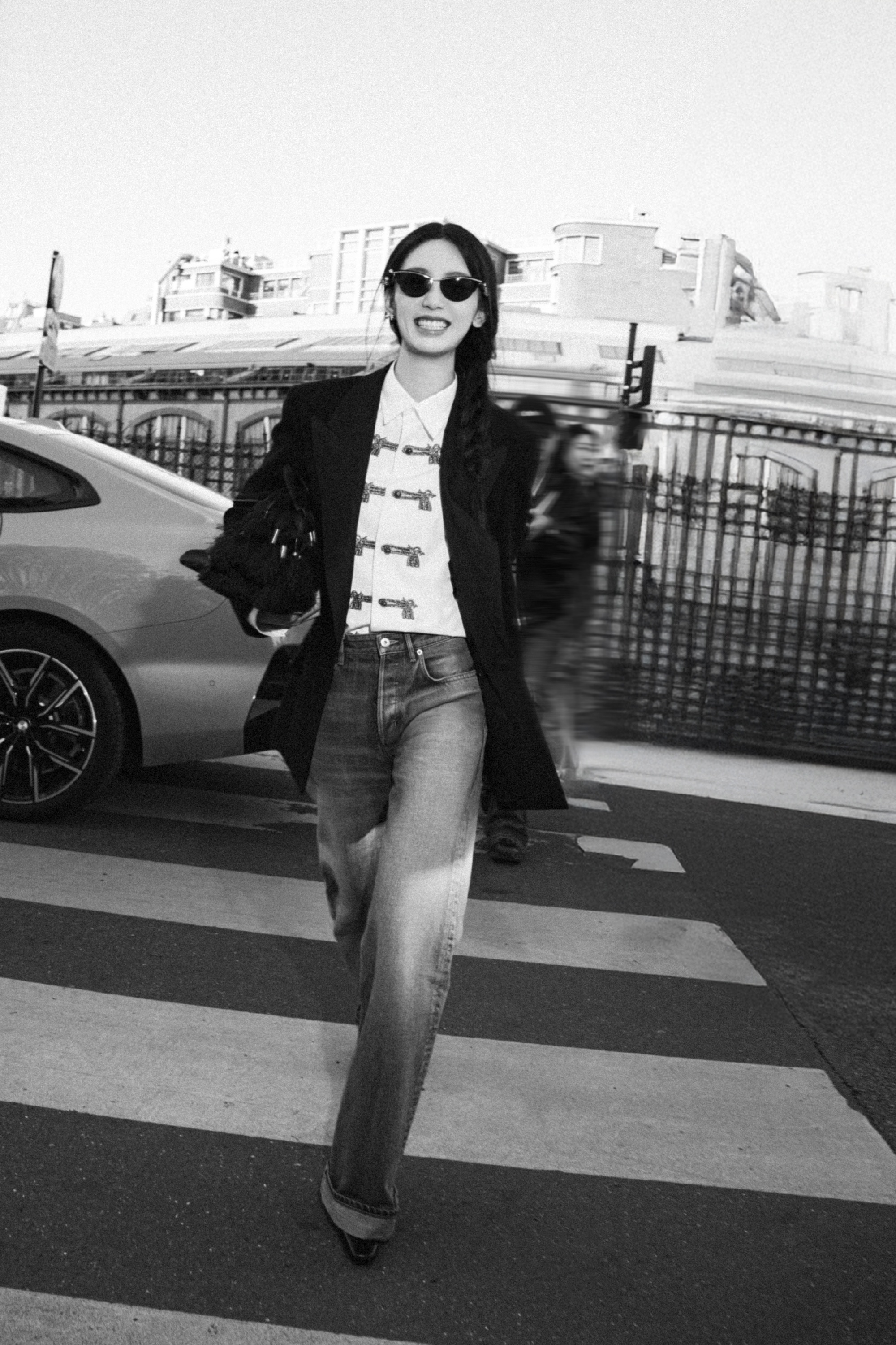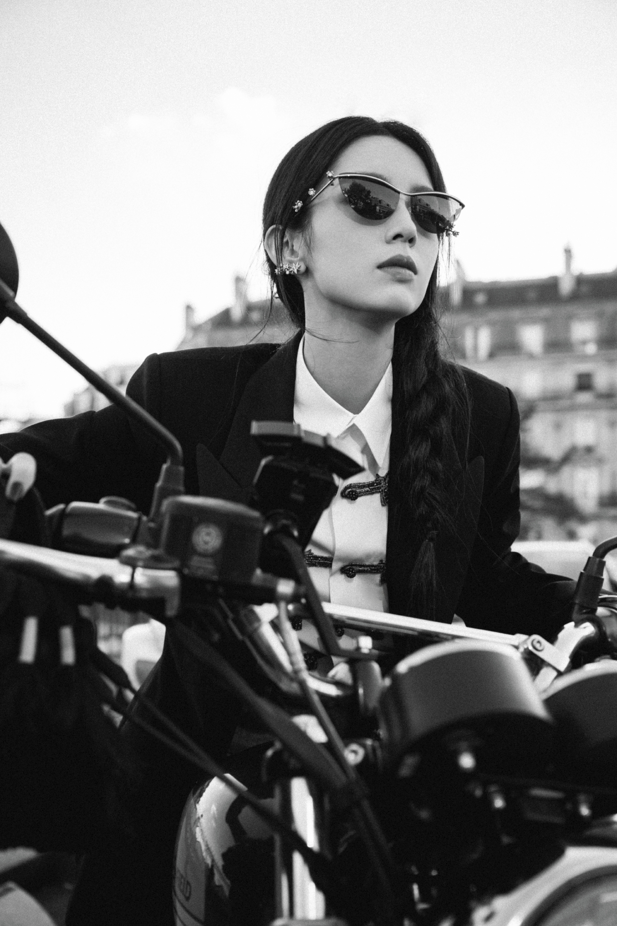 周也演绎 Dior机车系列:黑色皮夹克+修身皮裤+马丁靴