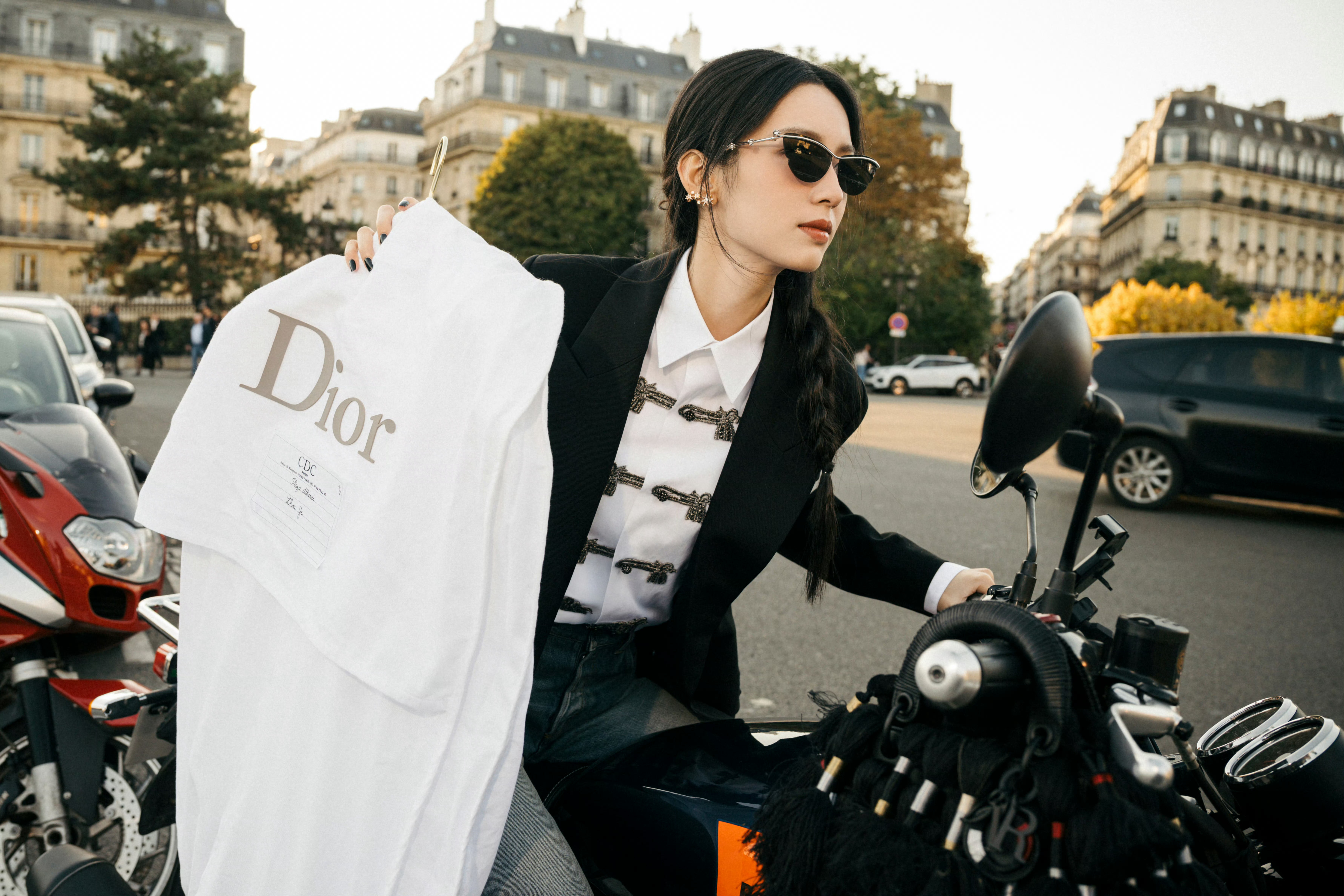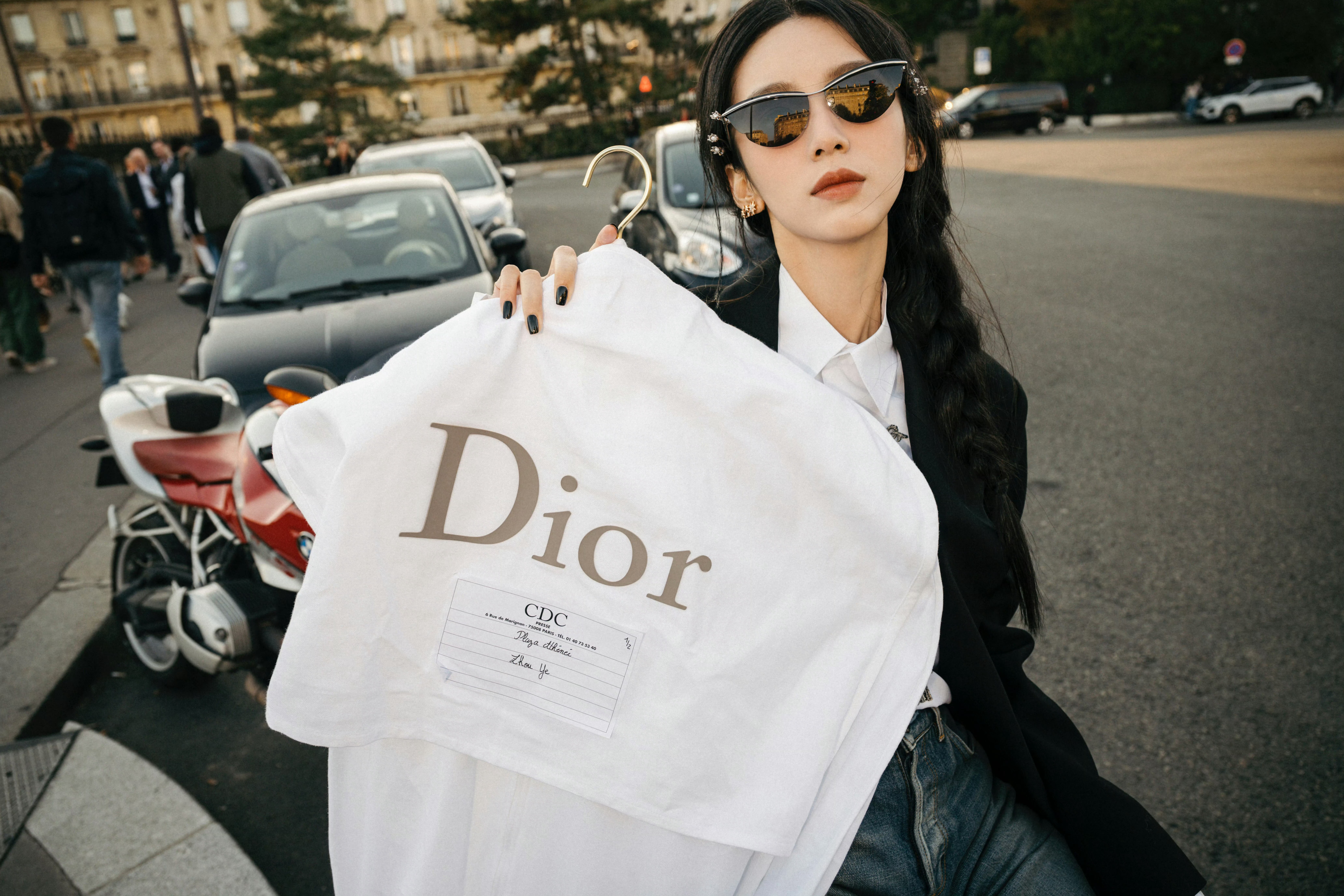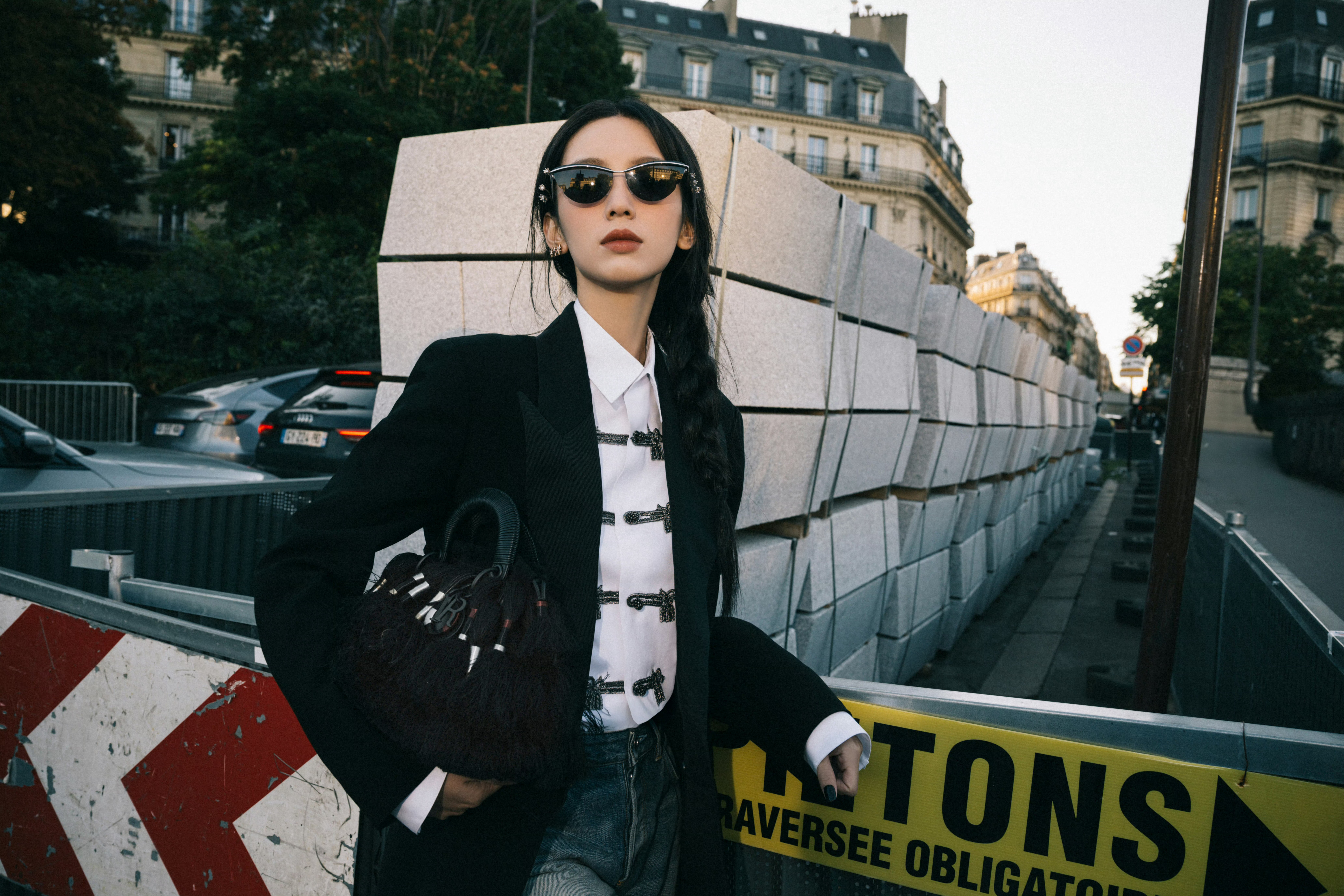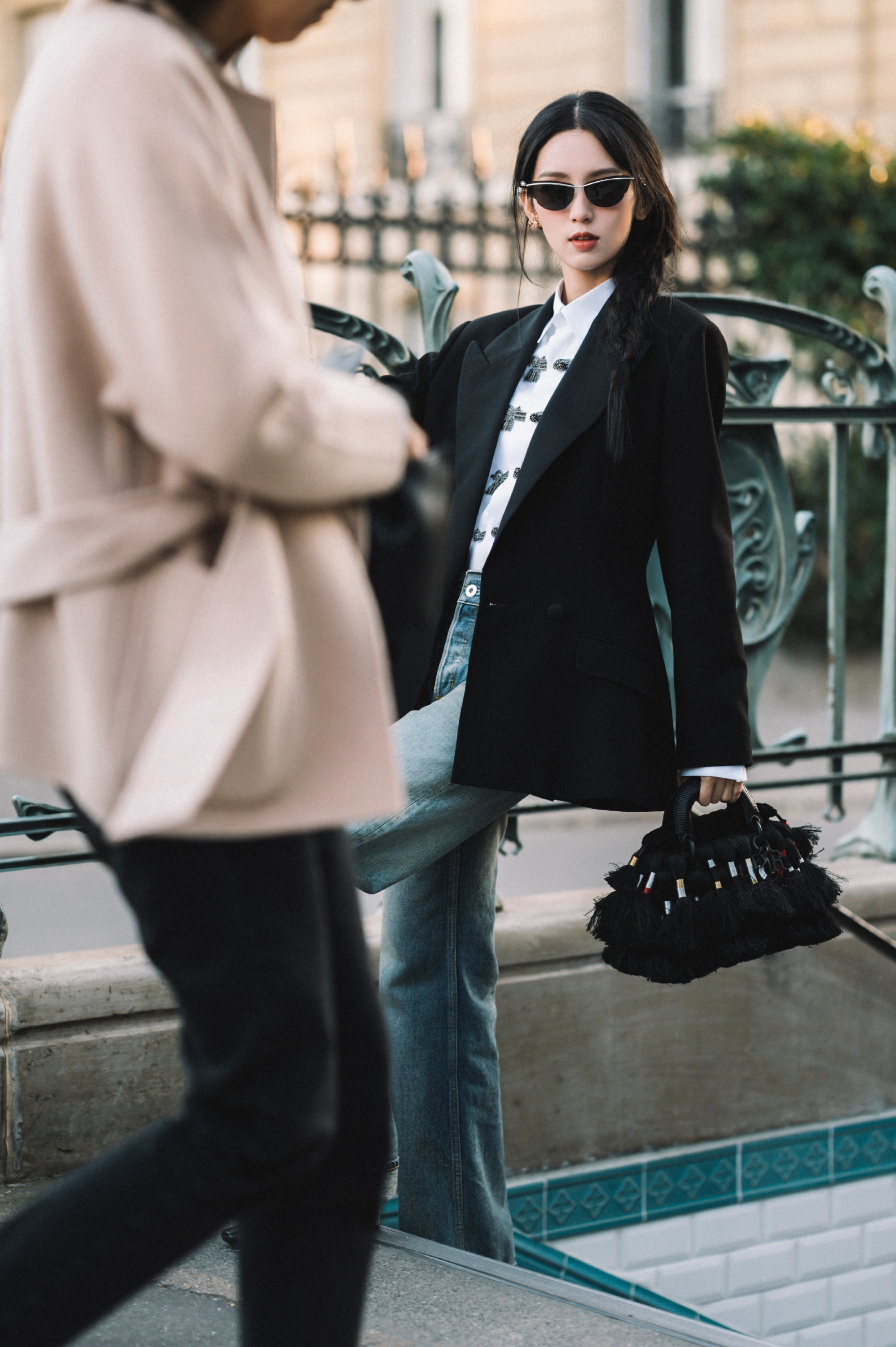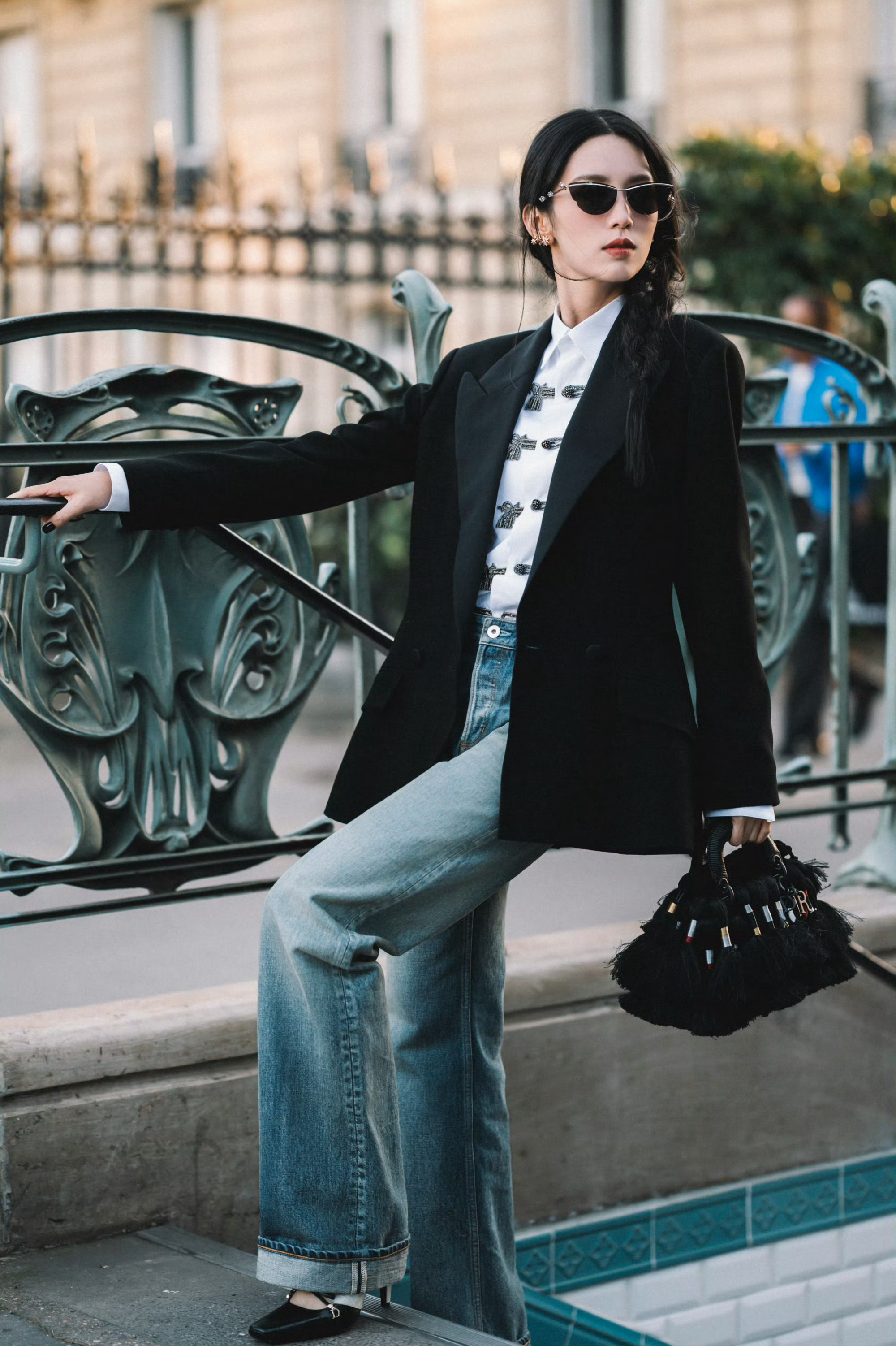 周也演绎 Dior机车系列:黑色皮夹克+修身皮裤+马丁靴