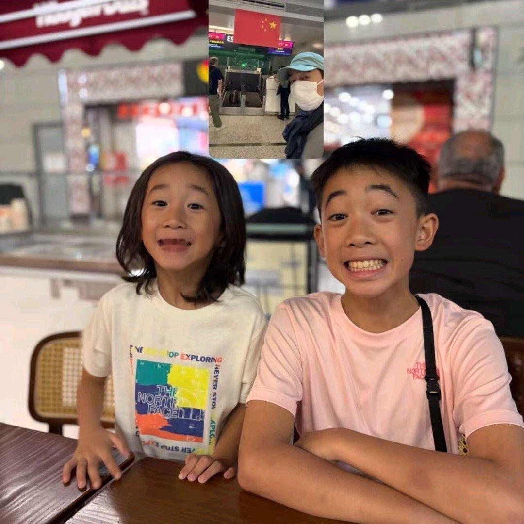 10月1日,陈小春晒俩儿子的视频合照,兄弟俩和爸爸视频的画面。 12岁的大儿