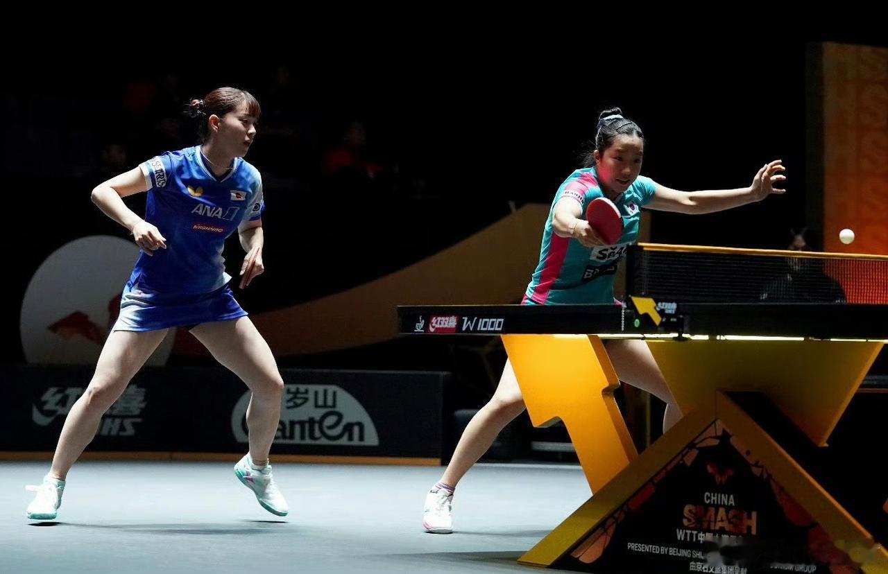 王曼昱/蒯曼🇨🇳首局获胜[奋斗]! 第一局王曼昱/蒯曼🇨🇳11-7胜了跨国组合长崎美柚🇯🇵/申裕斌🇰🇷 ! 这是WTT中国大满贯女双1/4决赛。 王曼昱/蒯曼配合默契,强强联手的两人联袂出战,必是战无不胜。 长崎美柚和申裕斌虽个人能力不俗,但默契程度必然不会太足。 今天申裕斌的单打、双打都遇到了蒯曼,只能说她运气不太好了。 看!第二局王曼昱/蒯曼🇨🇳11-6长崎美柚🇯🇵/申裕斌🇰🇷[笑哭]! 评论区继续播报战况哦。